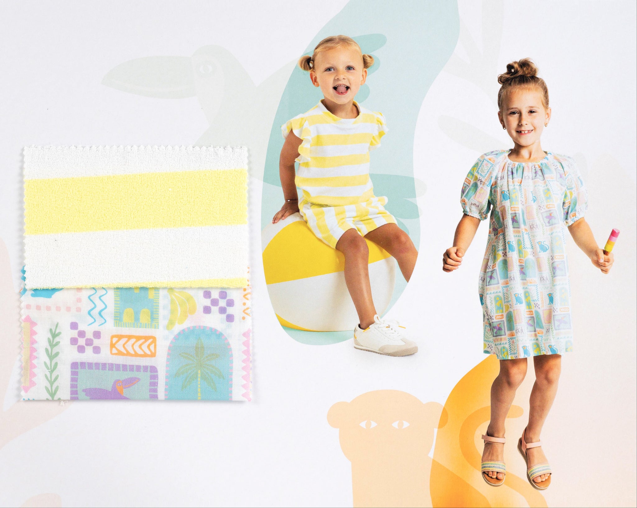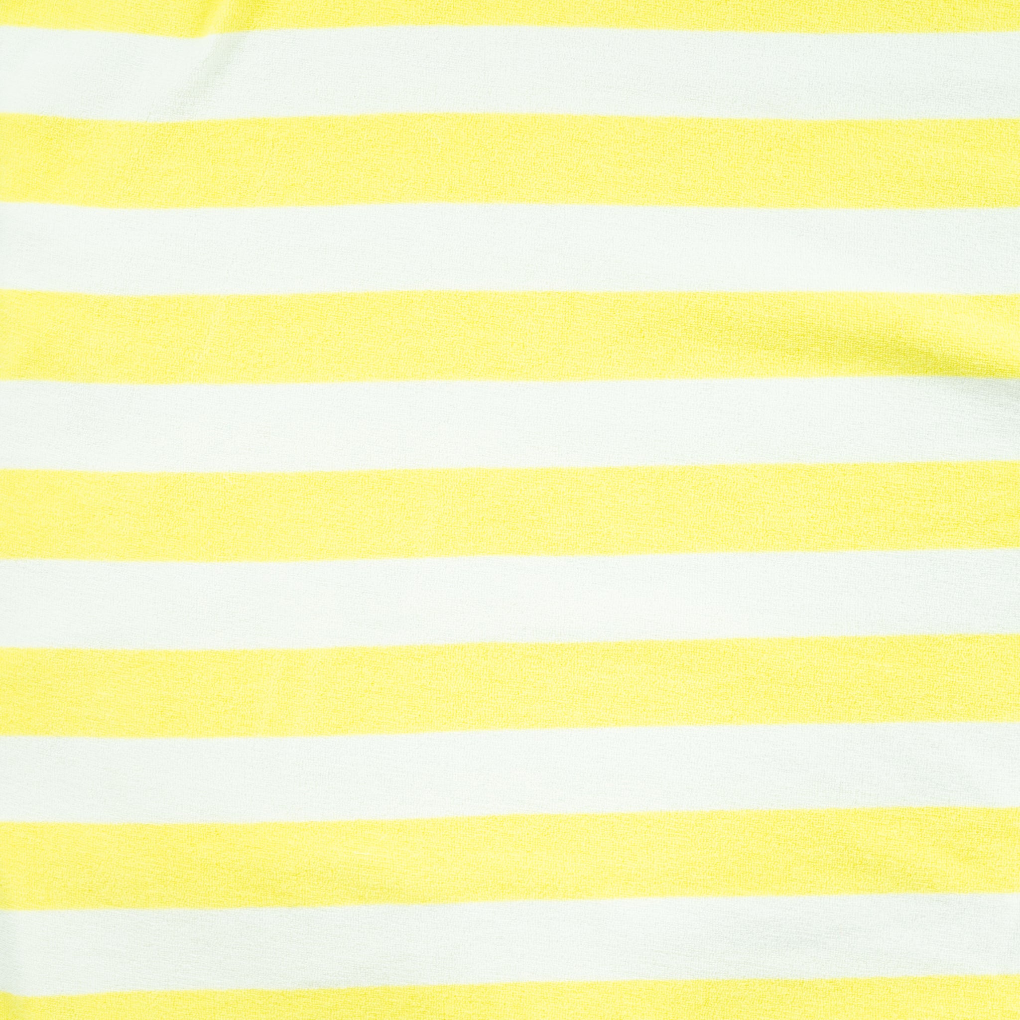 We are delighted to be stocking this playful, cosy and comfortable towelling terry with wide yellow stripes running horizontally on the white background. This fabric is soft and cuddly ideal for making t-shirts, shorts, tops, loungewear and evening dresses. It’s a perfect fabric for Childrenswear or for adults.
