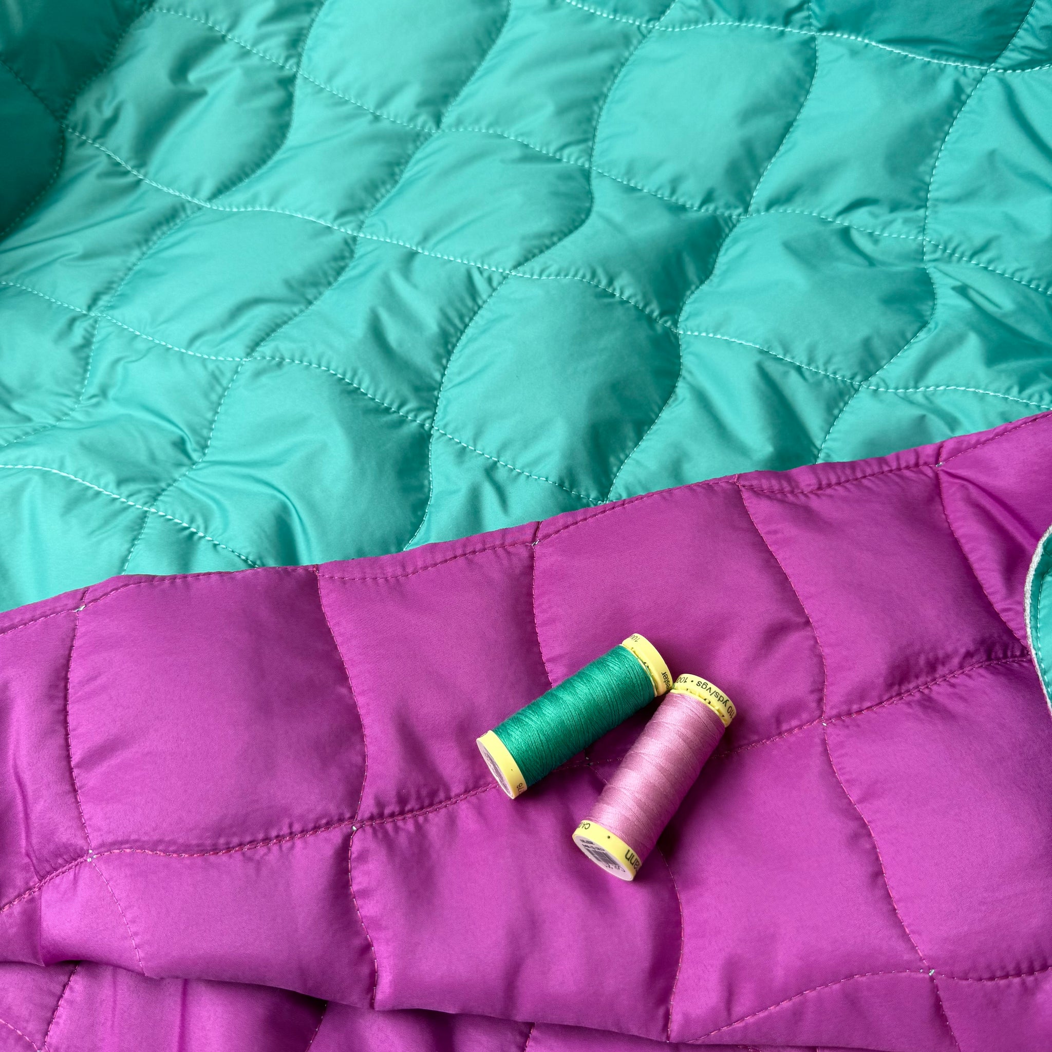 This fun and elegant reversible wadded, pre-quilted fabric is perfect for making lightweight and very cosy jackets or vests for all year round. The fabric has a pleasant smooth finish on both sides and features graphic quilting. It has padding sewn between the two layers.