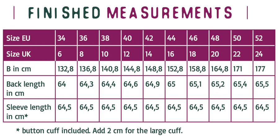 - 6 buttons of ca. 11 mm - 4 extra for the version with button cuffs