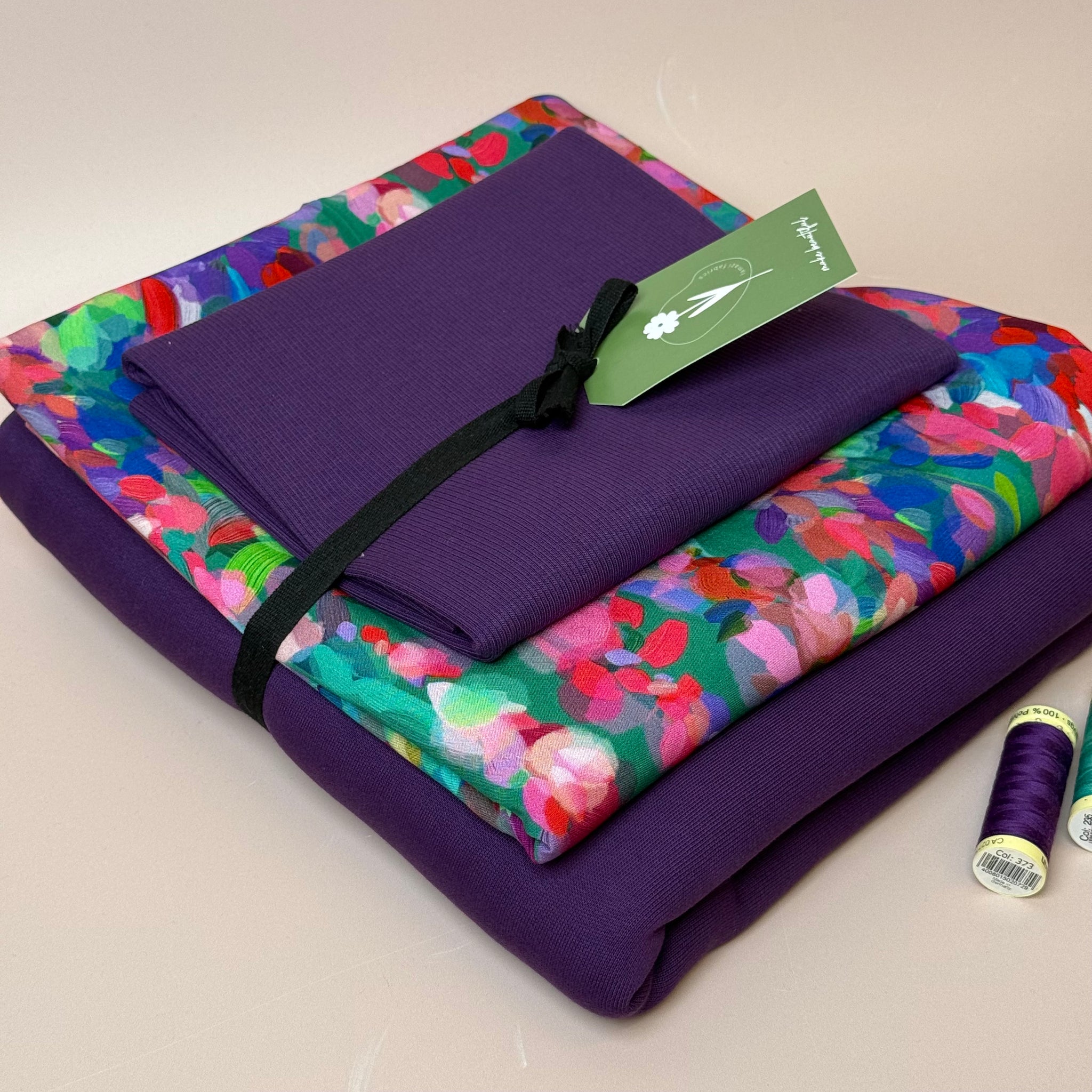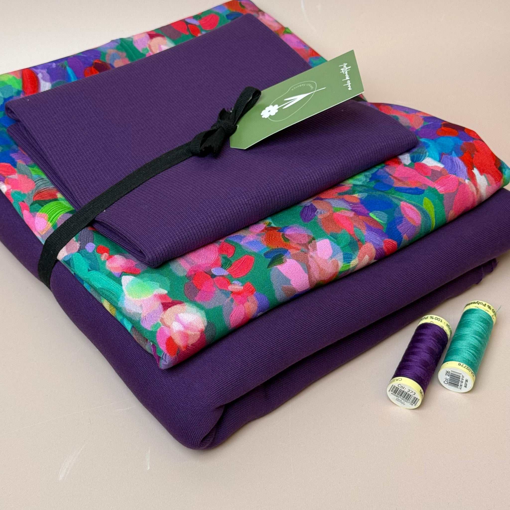 Make an Outfit Colour Bundle - Lupine Petals Viscose & Brushed Sweatshirt in Plum with Ribbing