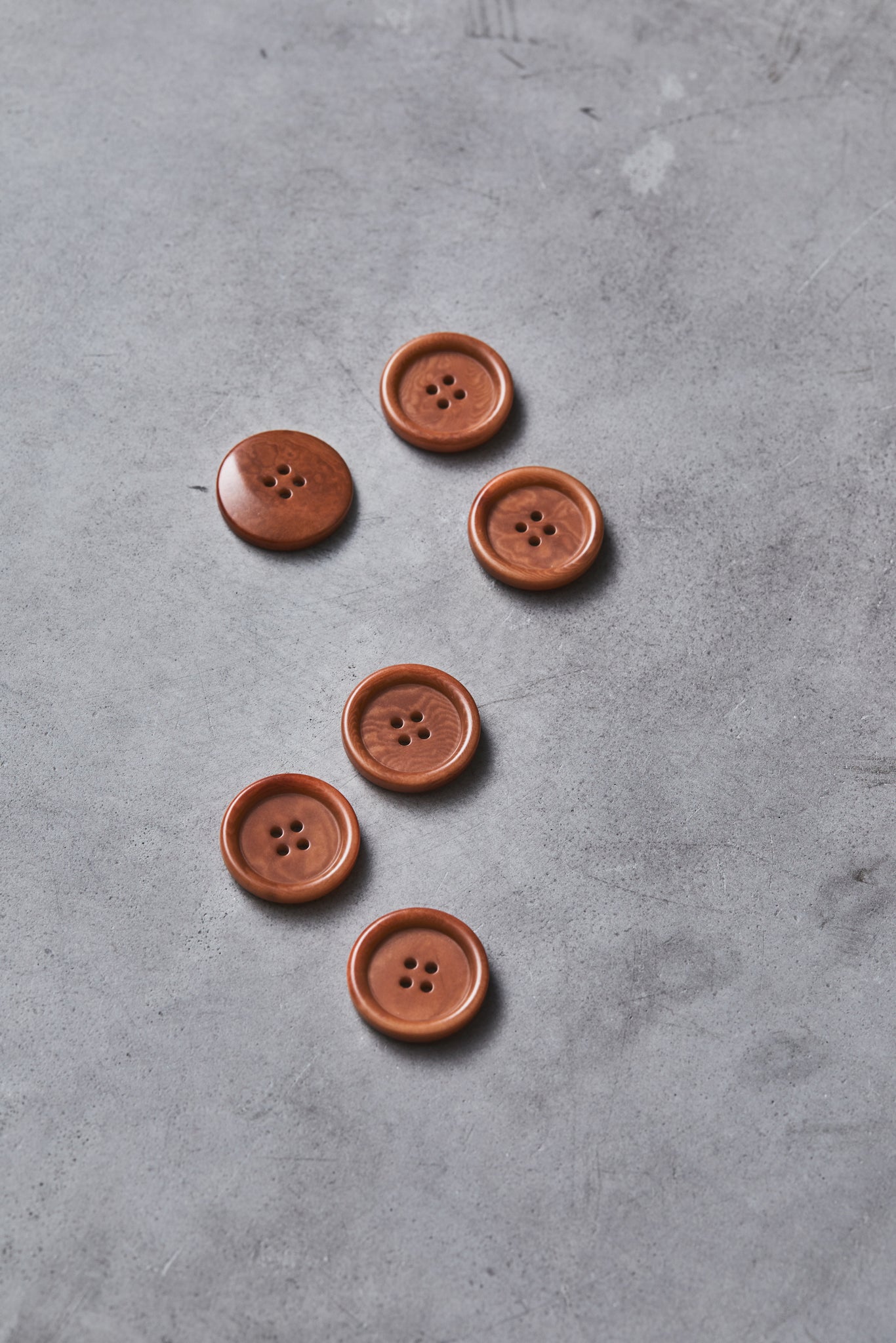 So corozo button production does not require any deforestation. Corozo is made of very dense organic fibres which results in excellent durability and scratch resistance. mind the MAKER Corozo buttons are dyed with environmental friendly dyes, and a unique colour fixation system to make them resistant to vapor and washing.