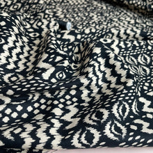 This mid-weight cotton canvas fabric has a lovely soft hand and features bohemian design in black and off-white shades. This fabric is softer than cotton gabardine twills available on our website. It is perfect for jackets, trousers, skirts, simple shift dresses requiring structure, handbags, wallets and other crafts or home accessories.