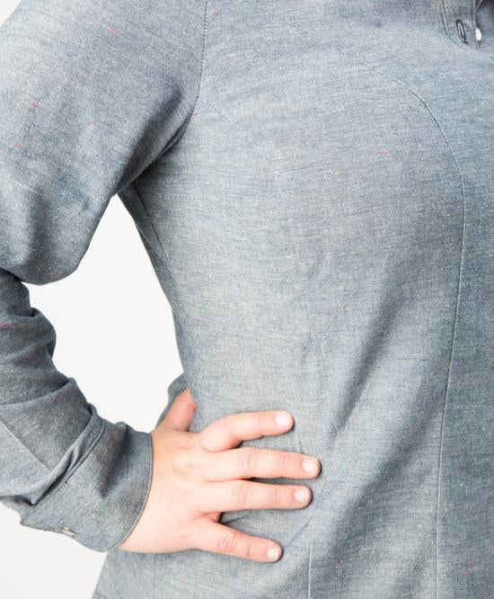 Finally, the answer to your prayers: a fitted button-down shirt that doesn't gape over curves! The Harrison Shirt is designed with double princess seams for a uniquely curve-friendly fit and all the features of a classic shirt, including a two-piece collar, yoke, and placket, separate button bands, and buttoned cuffs. This pattern looks equally pretty in crisp Oxford cottons at the office or cosy flannels for playing in the snow!