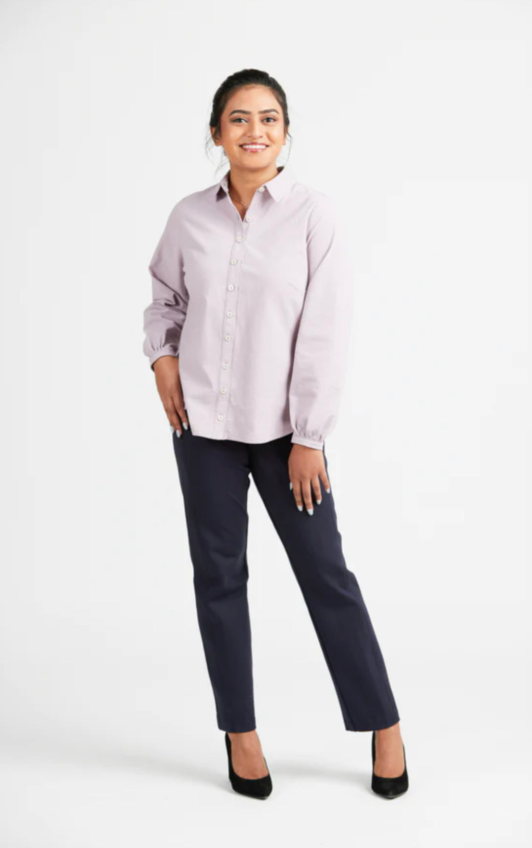 RECOMMENDED FABRIC: Light- to mid-weight woven fabrics such as shirting, lawn, or flannel. The lantern sleeves of View B work best with a medium weight fabric for a more structured look.