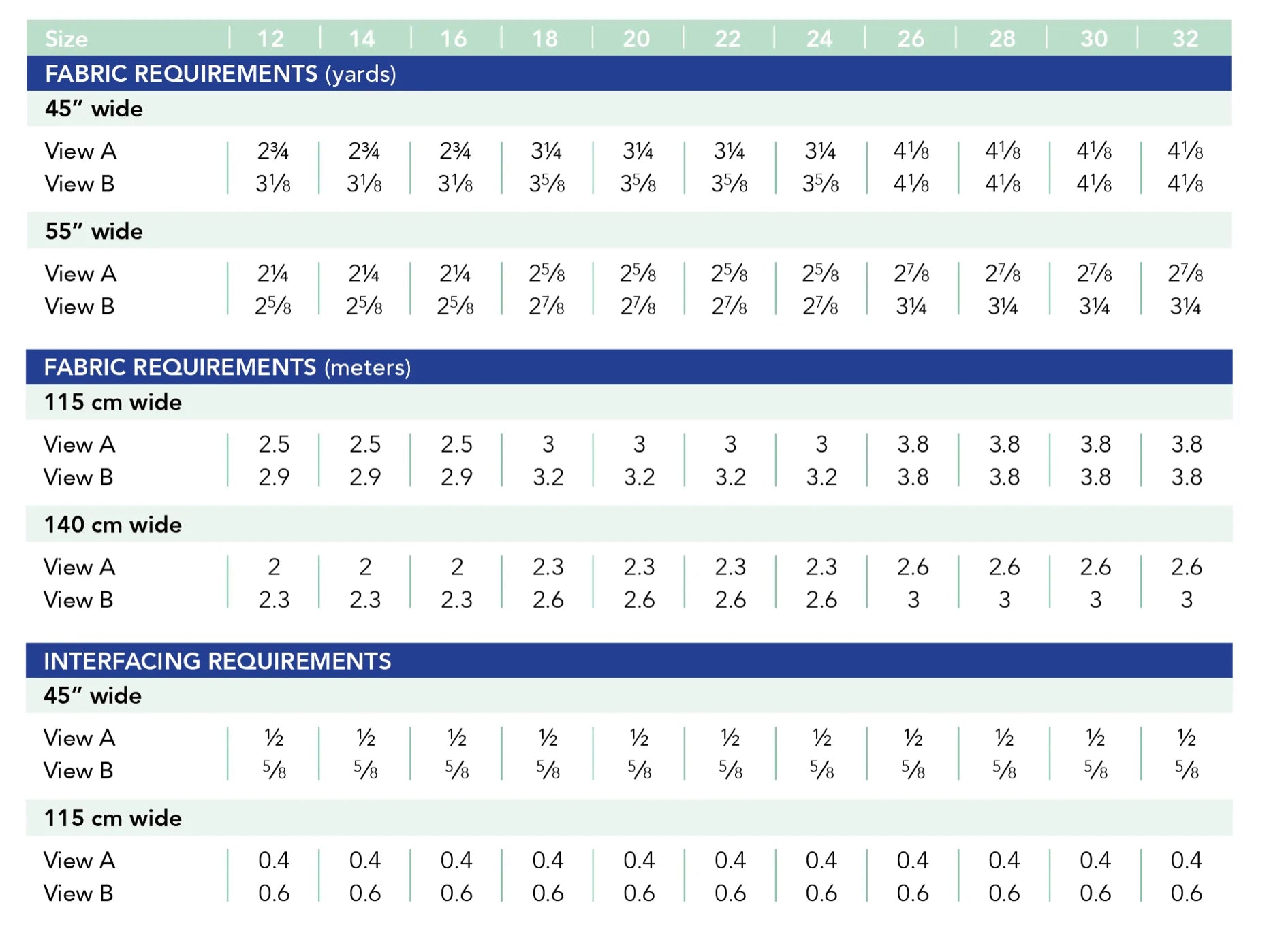 NOTIONS: Universal needle, thread, 12 (View A) or 14 (View B) buttons size 3⁄8 – 1⁄2” (10 –12 mm).