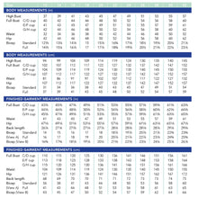SIZING: 12 to 28, in three cup sizes (C/D, E/F, G/H). Includes 40-62” bust and 42-62” hip.