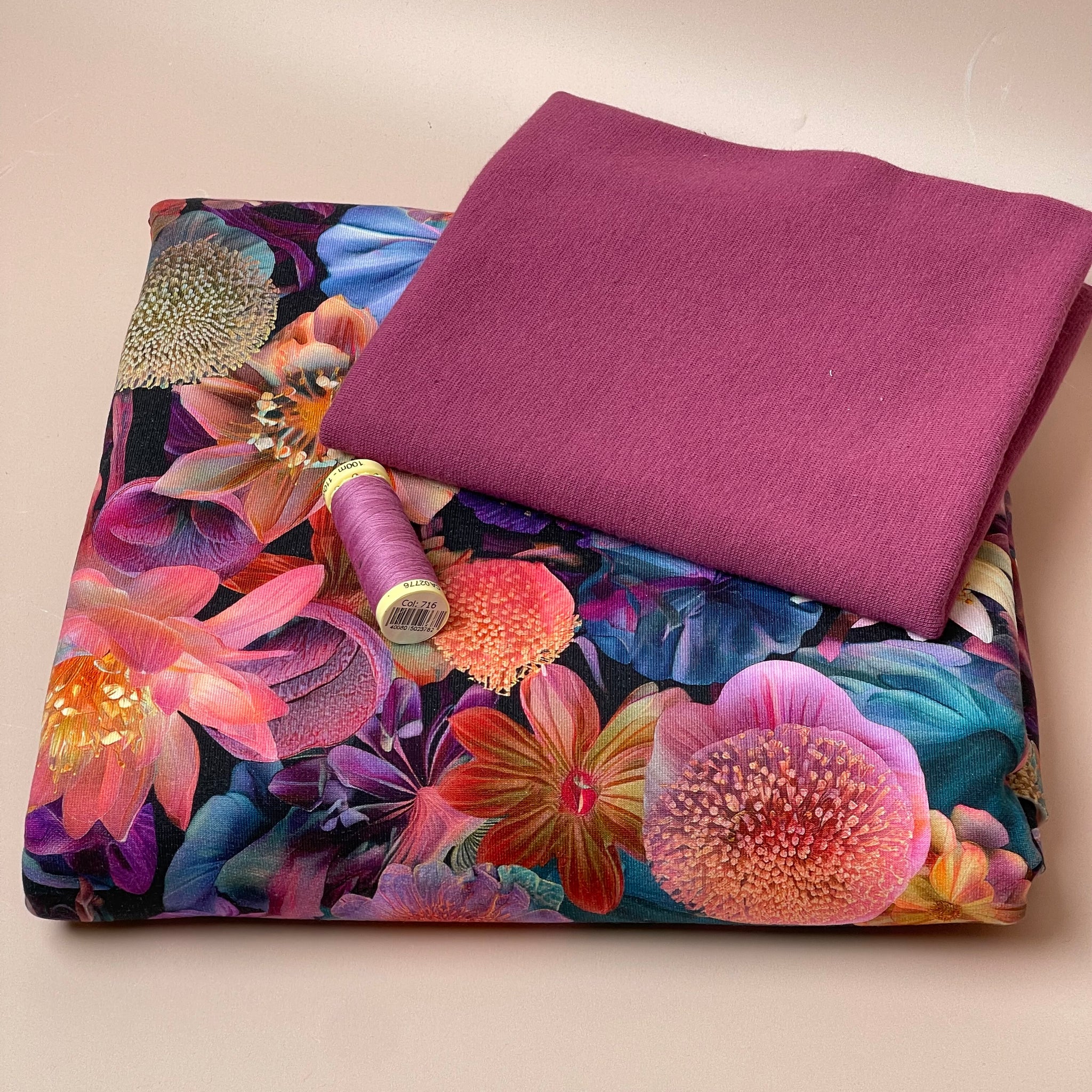 Presented in complementary and perfectly matching colours of our high quality fabrics, in this bundle we paired this soft and cuddly cotton sweatshirting with the complementary organic cotton cuff ribbing.