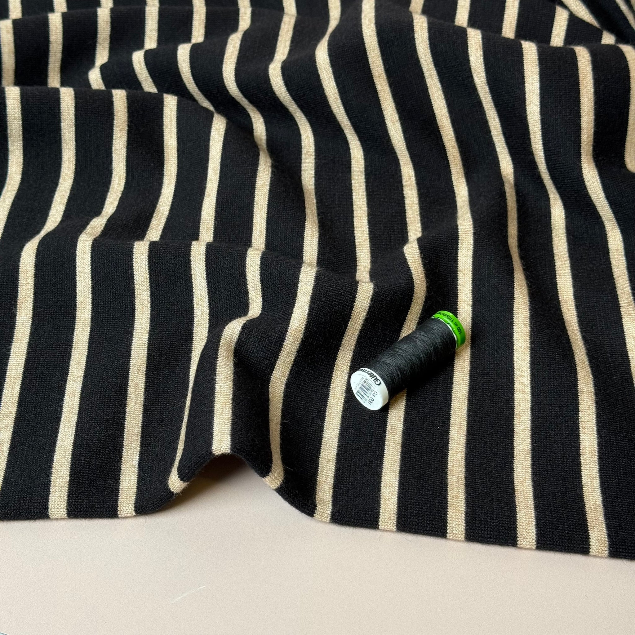 Yarn Dyed Viscose Blend Double Knit Stripes in Black & Beige