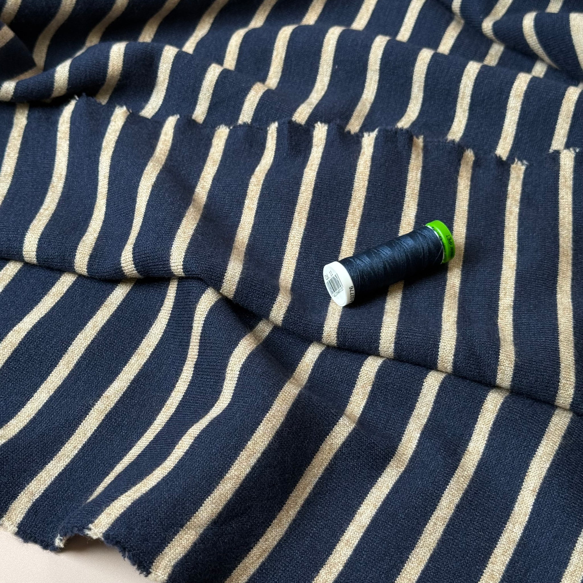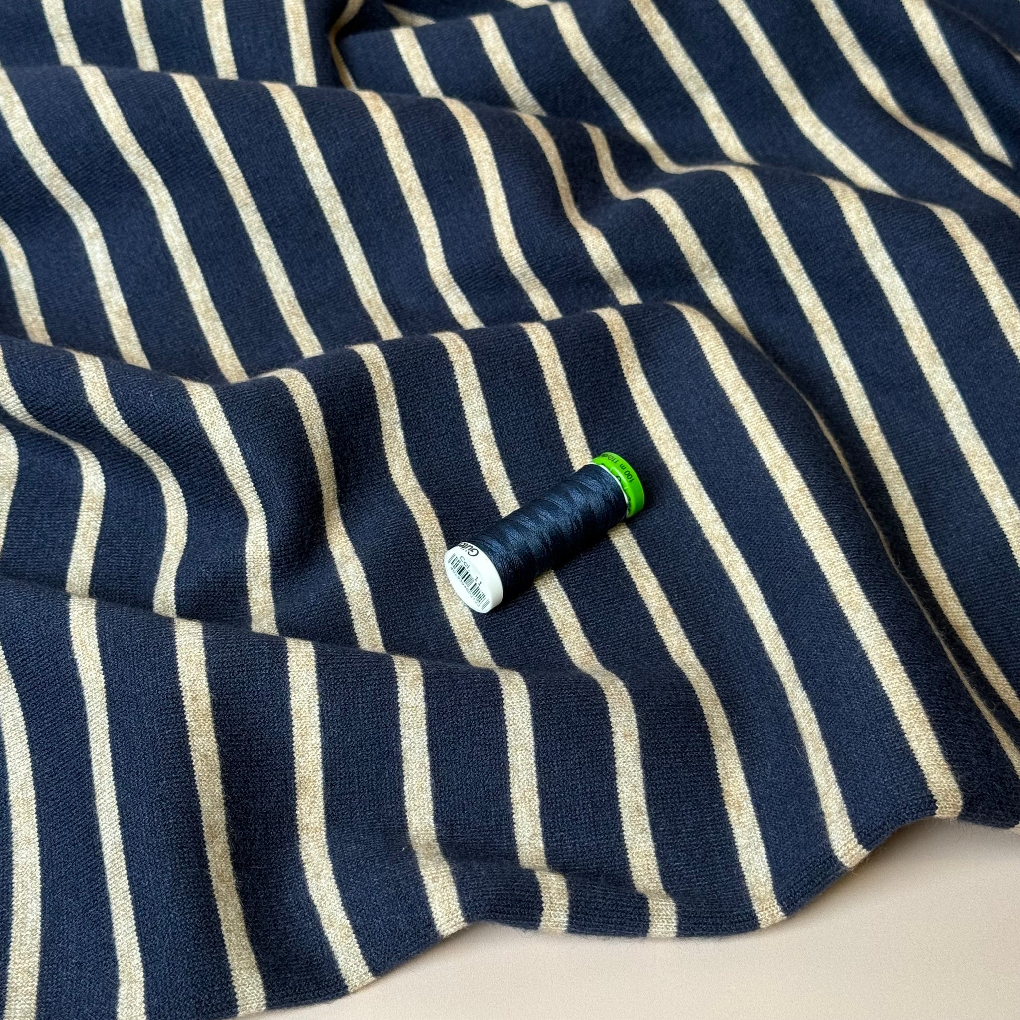 Yarn Dyed Viscose Blend Double Knit Stripes in Navy & Beige