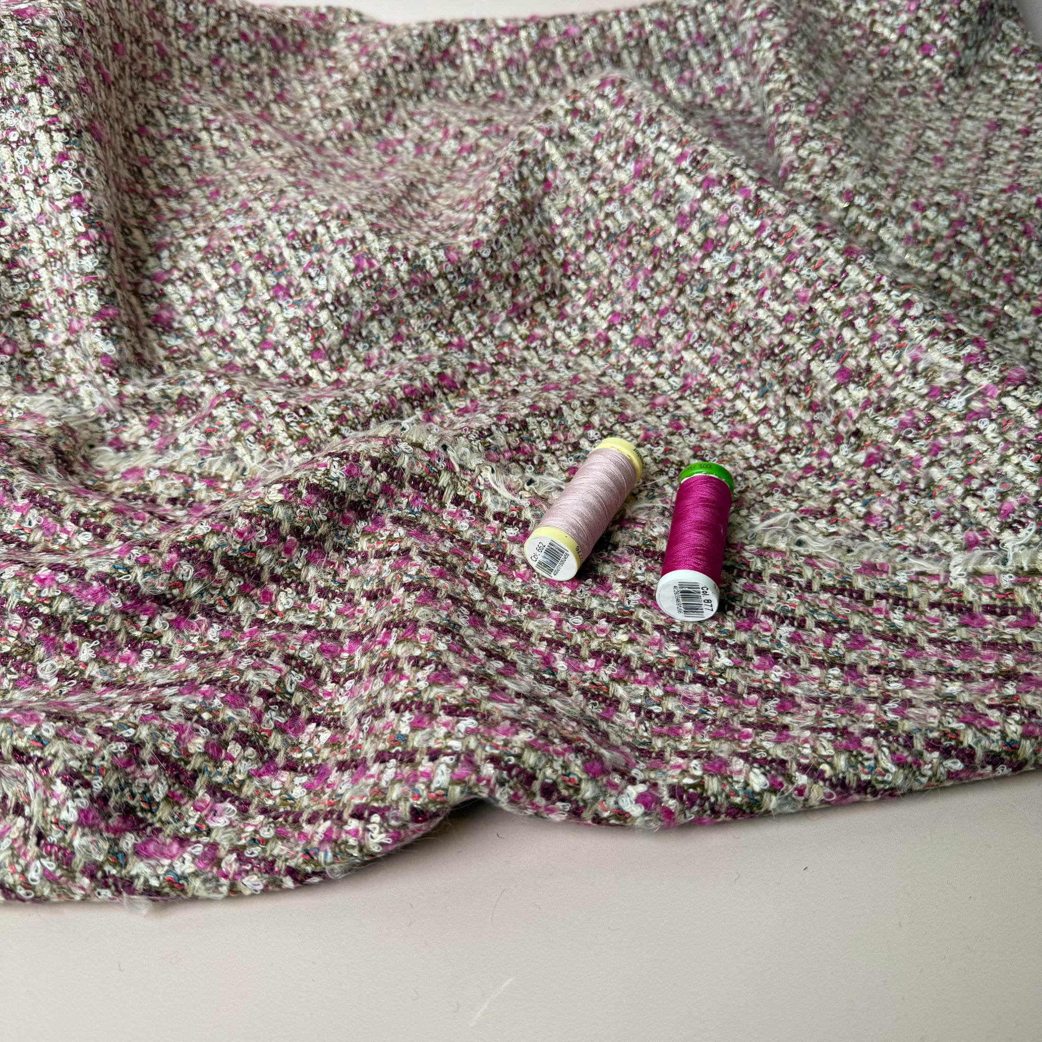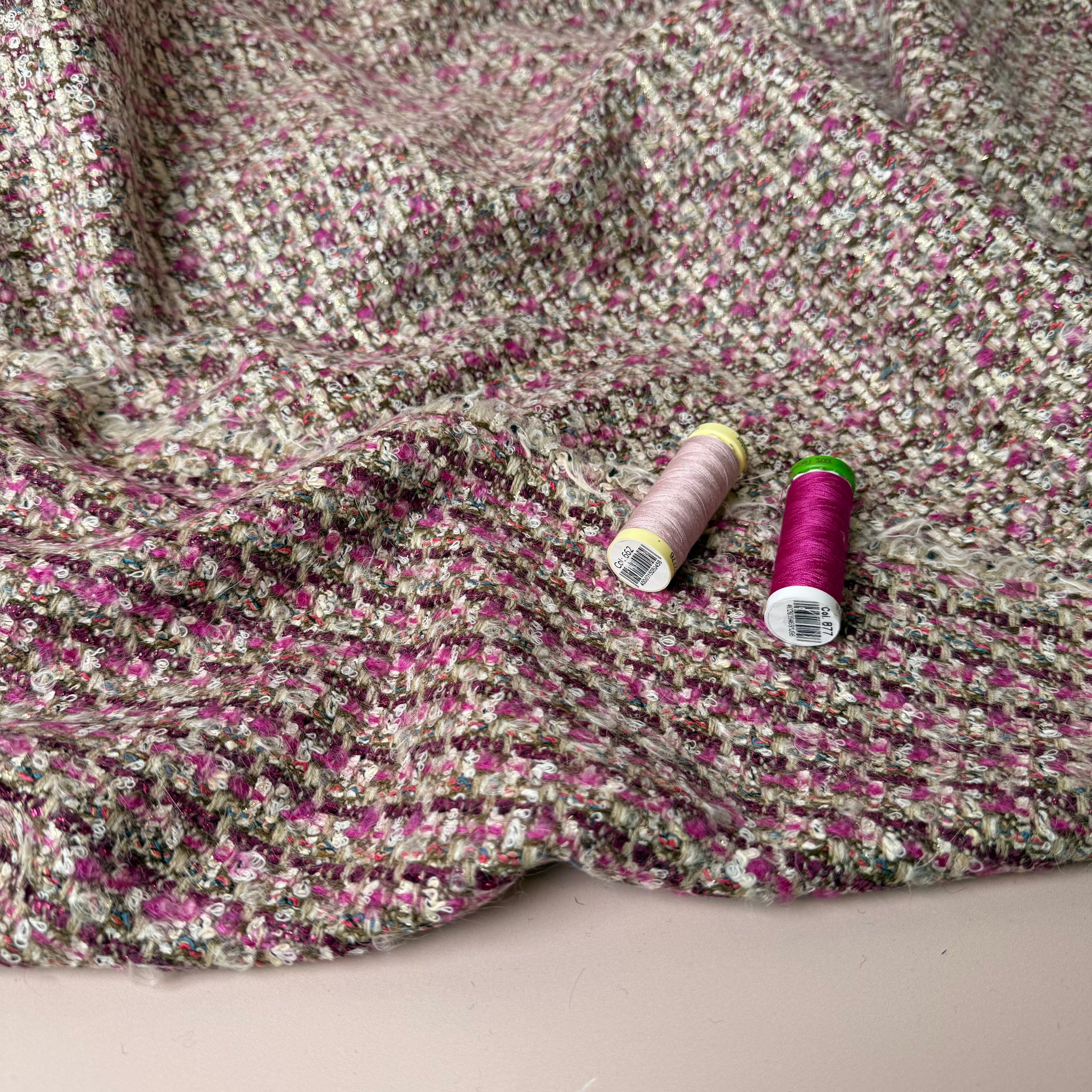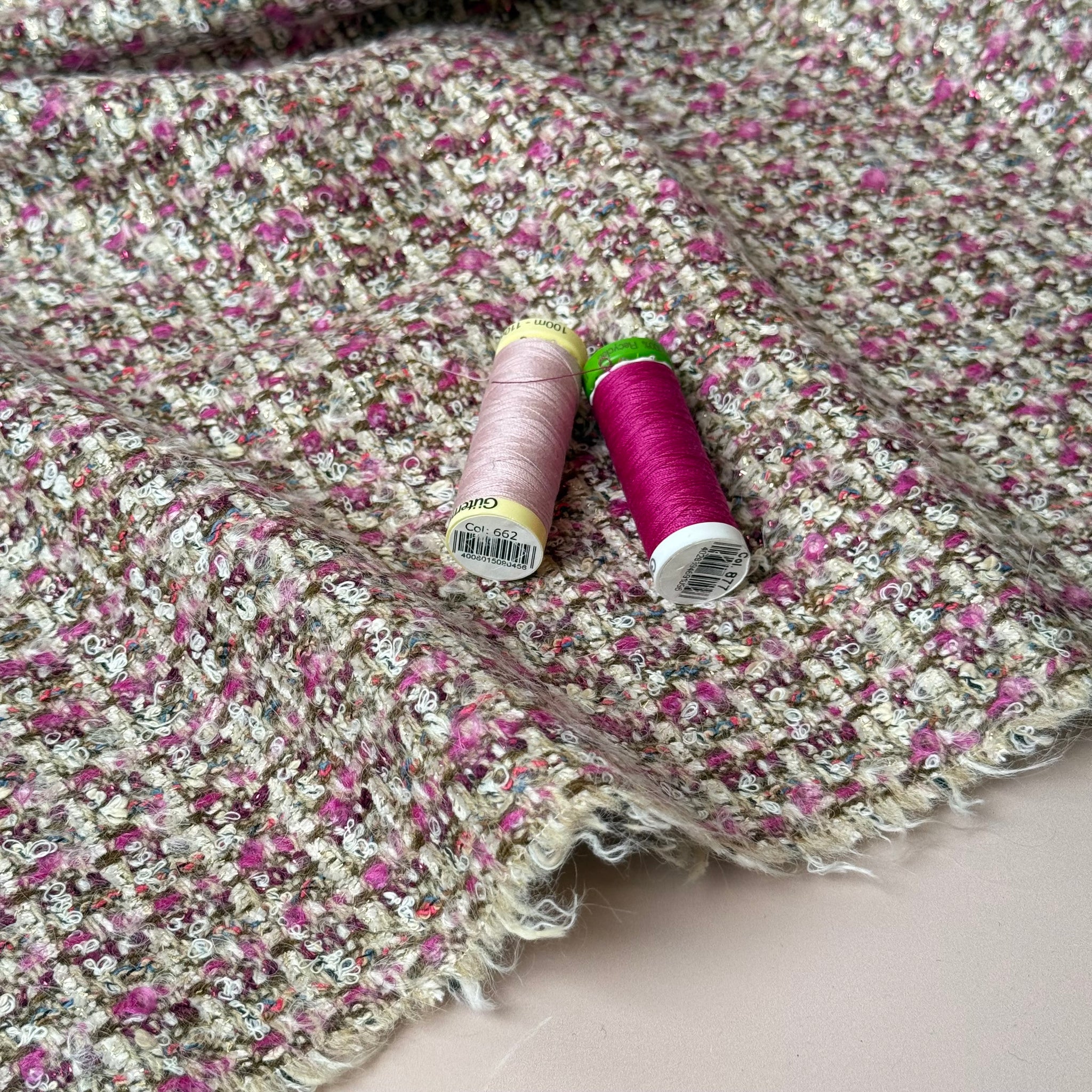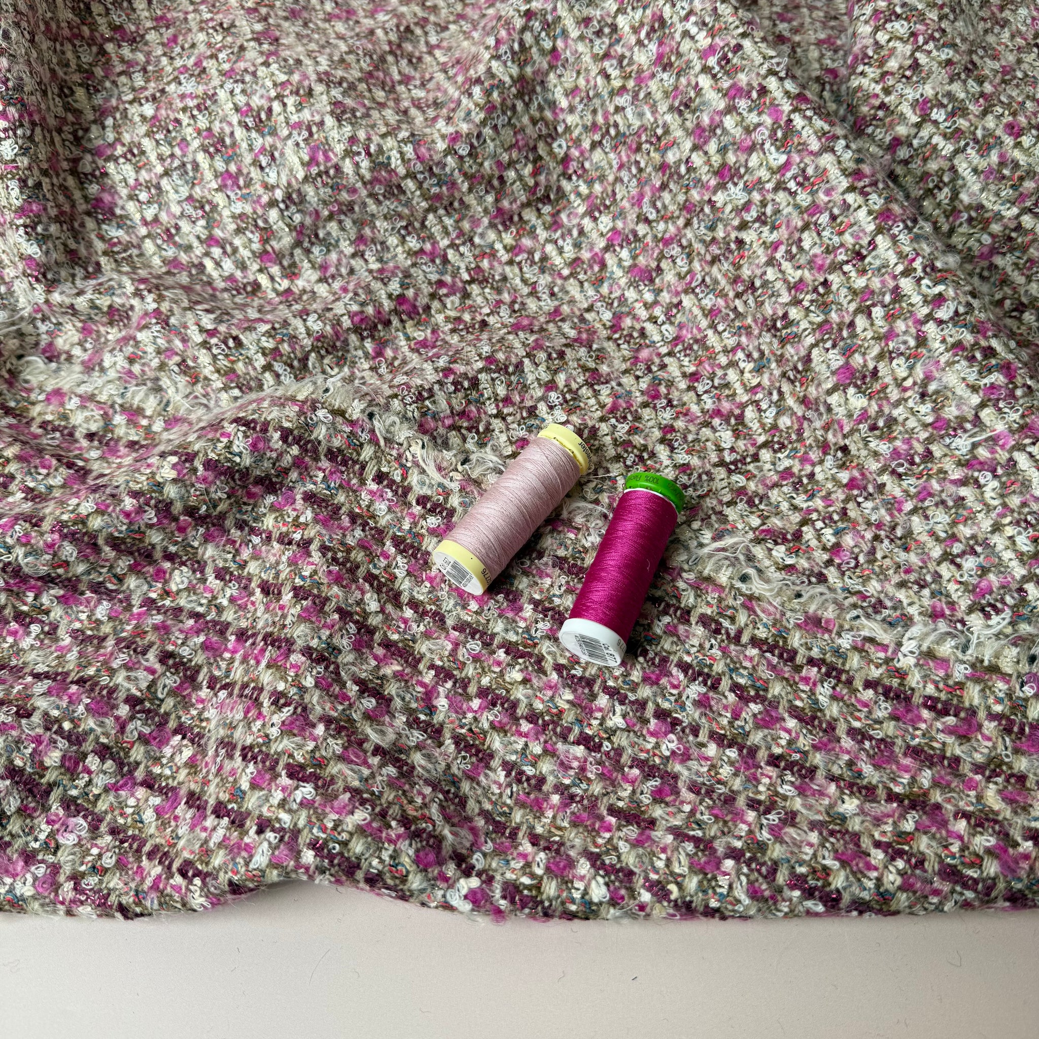 Deadstock - Ab Moon Wool Boucle Tweed in Blush & Magenta