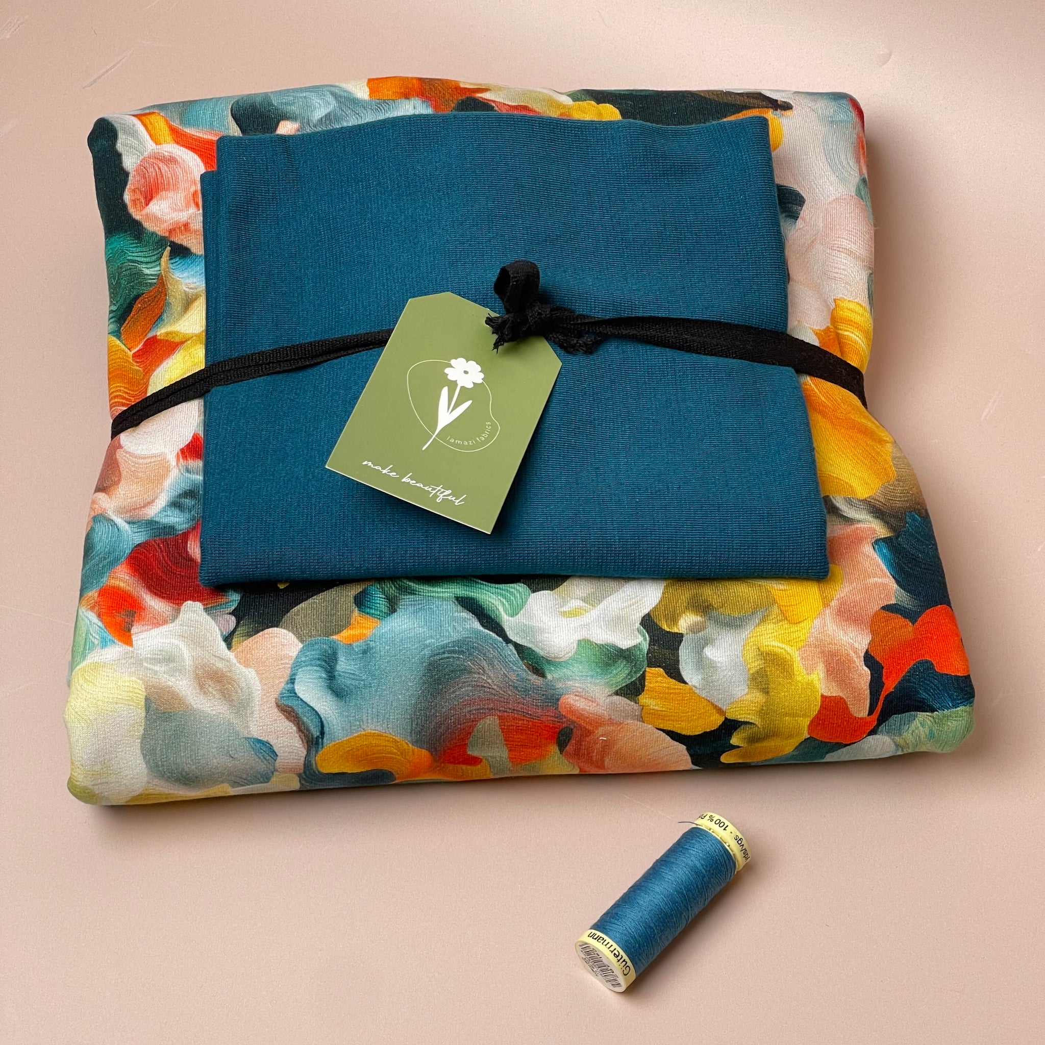 Presented in complementary and perfectly matching colours of our high quality fabrics, in this bundle we paired this soft and cuddly cotton sweatshirting with the complementary organic cotton cuff ribbing.