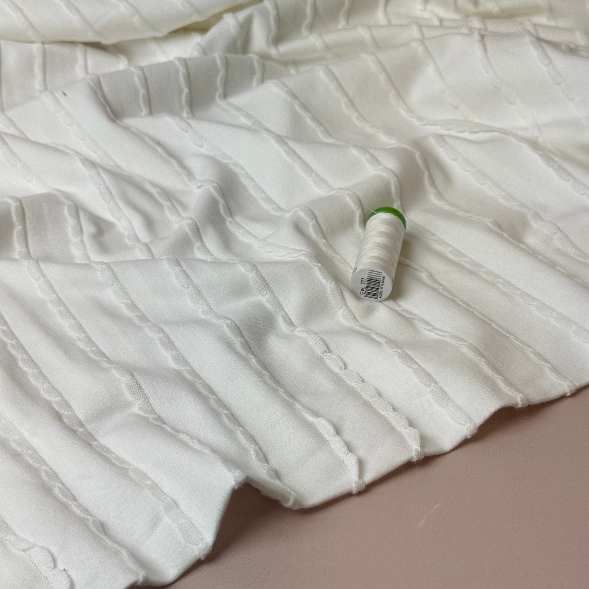 PRE-ORDER (arriving by mid November) Knitted Frills Off-White Cotton Jersey Fabric