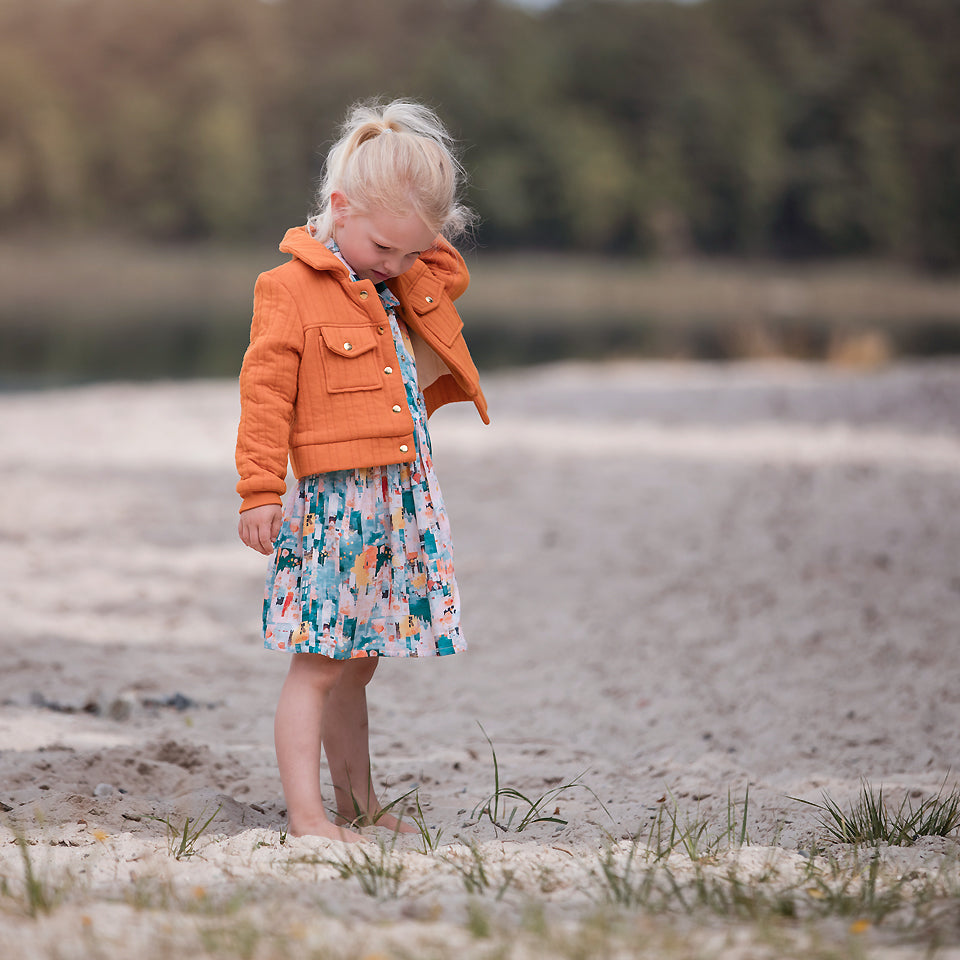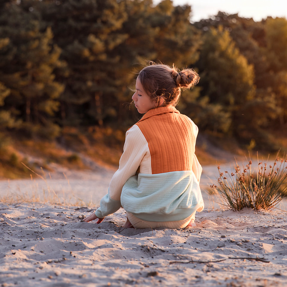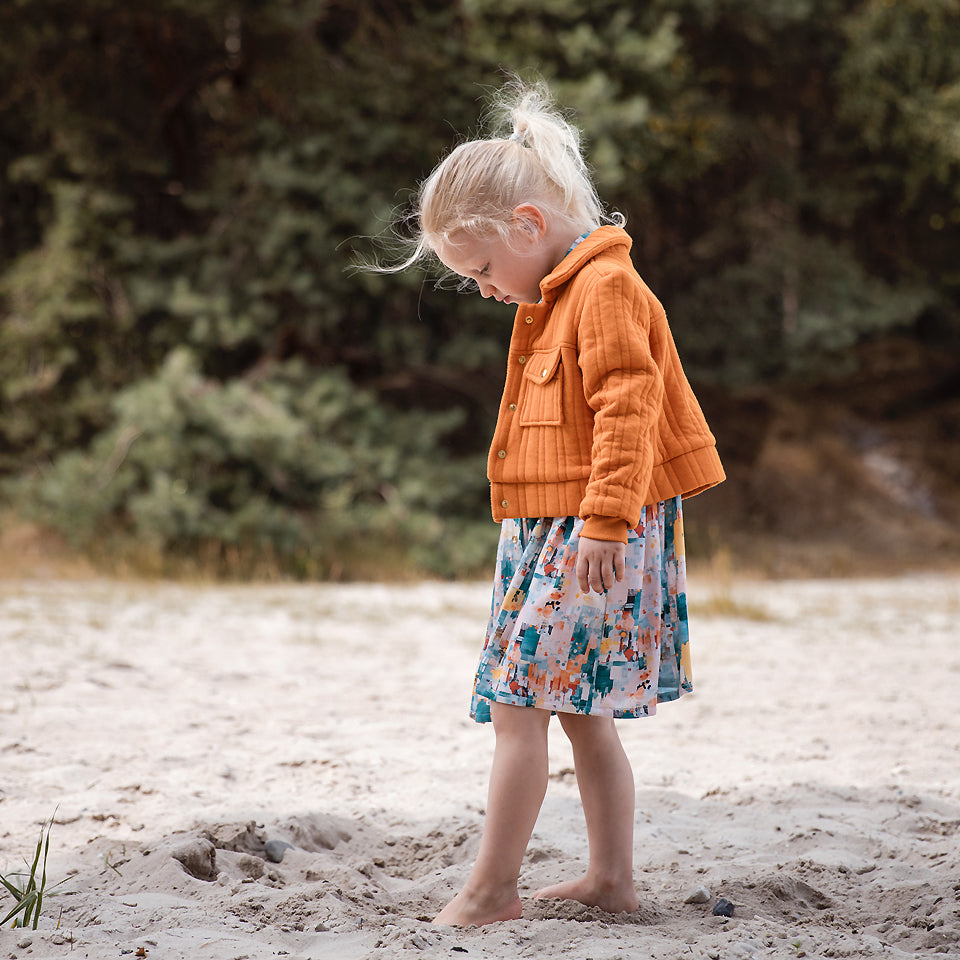This extra wide knitted fabric has a smooth and soft surface and is padded/quilted in vertical lines, suitable for stylish jackets and sweaters, but also skirts, little baby and children's clothes or purses & bags.