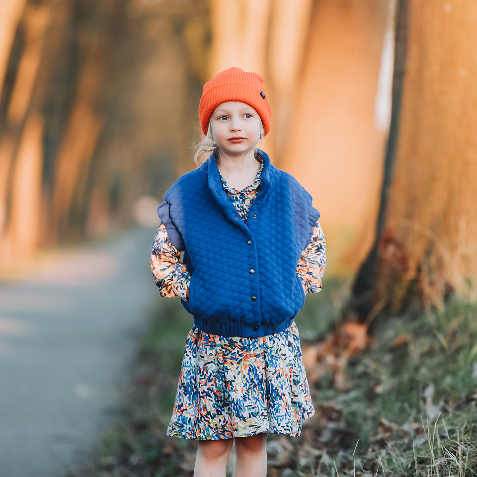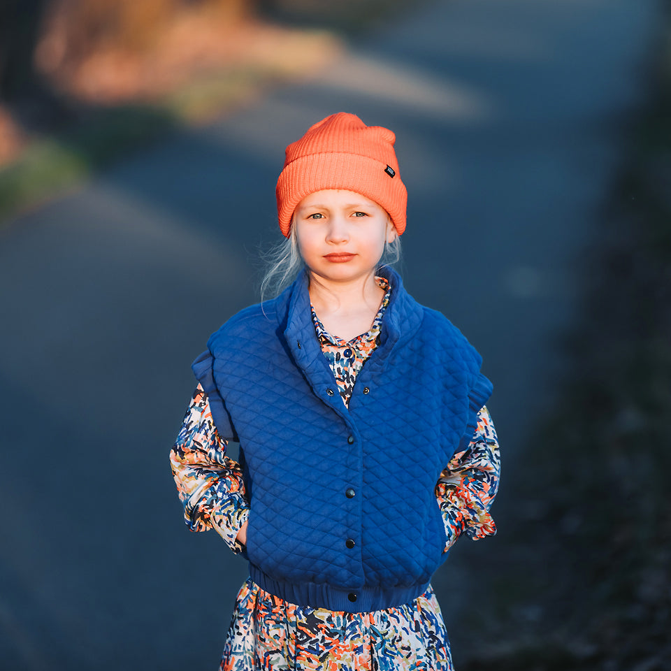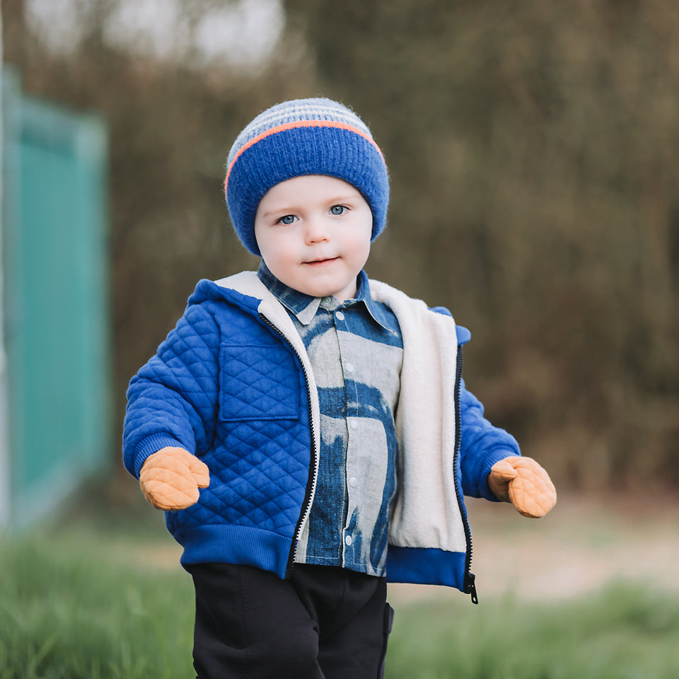 This extra wide knitted fabric has a piqué texture and is padded/quilted in diamond shapes, suitable for stylish jackets, sweaters, waistcoats and simple warm dresses.