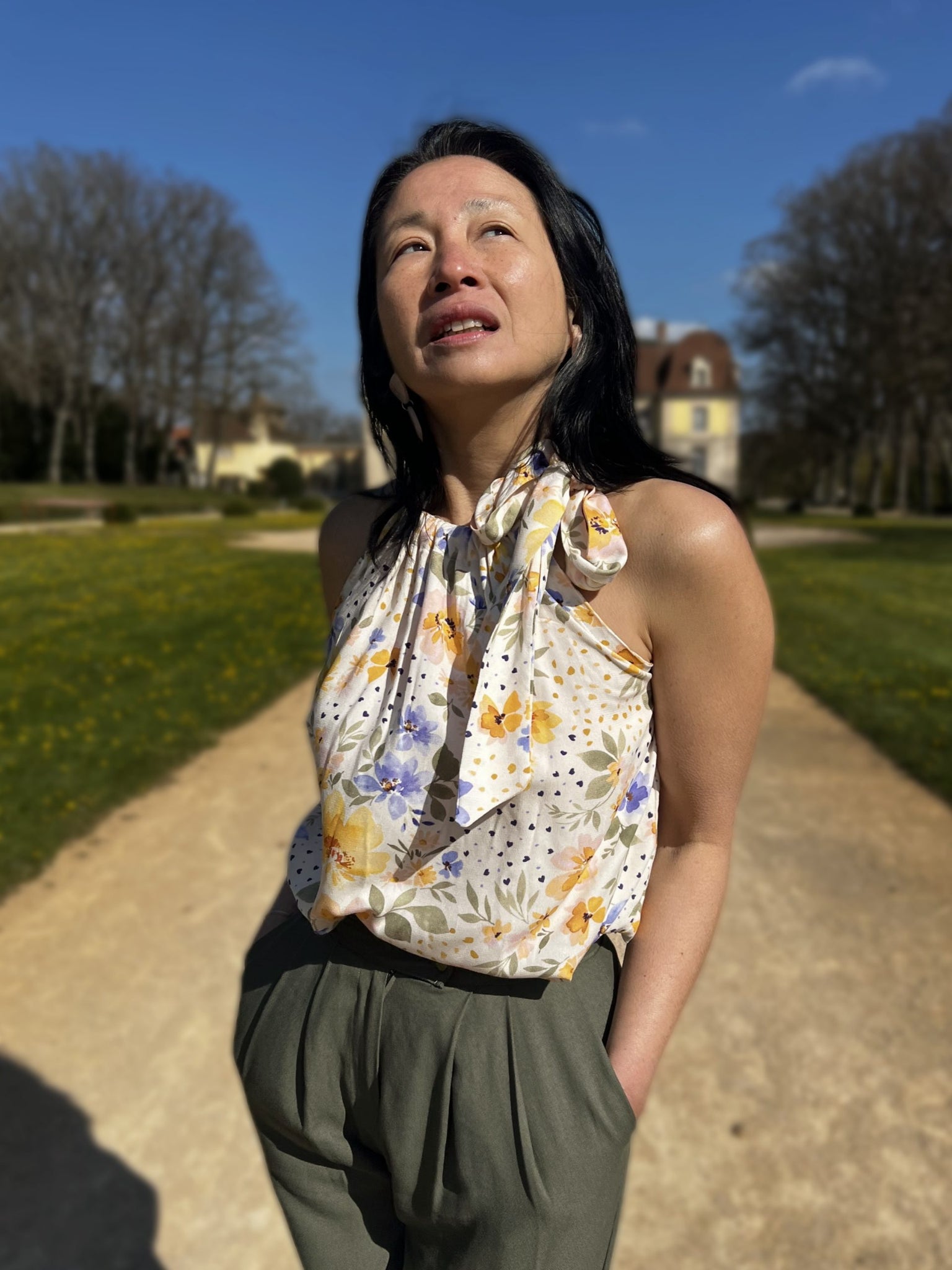 A delicate floral print in shades of bright yellow, soft blue, and sage green, accentuated with subtle little hearts and petals, like a flurry of details. A fabric that immediately evokes the lightness of sunny days! Mélia stands out for its harmonious colours and its exquisitely delicate floral pattern. The flowers seem to blend into the fabric, creating a delicate and natural effect.