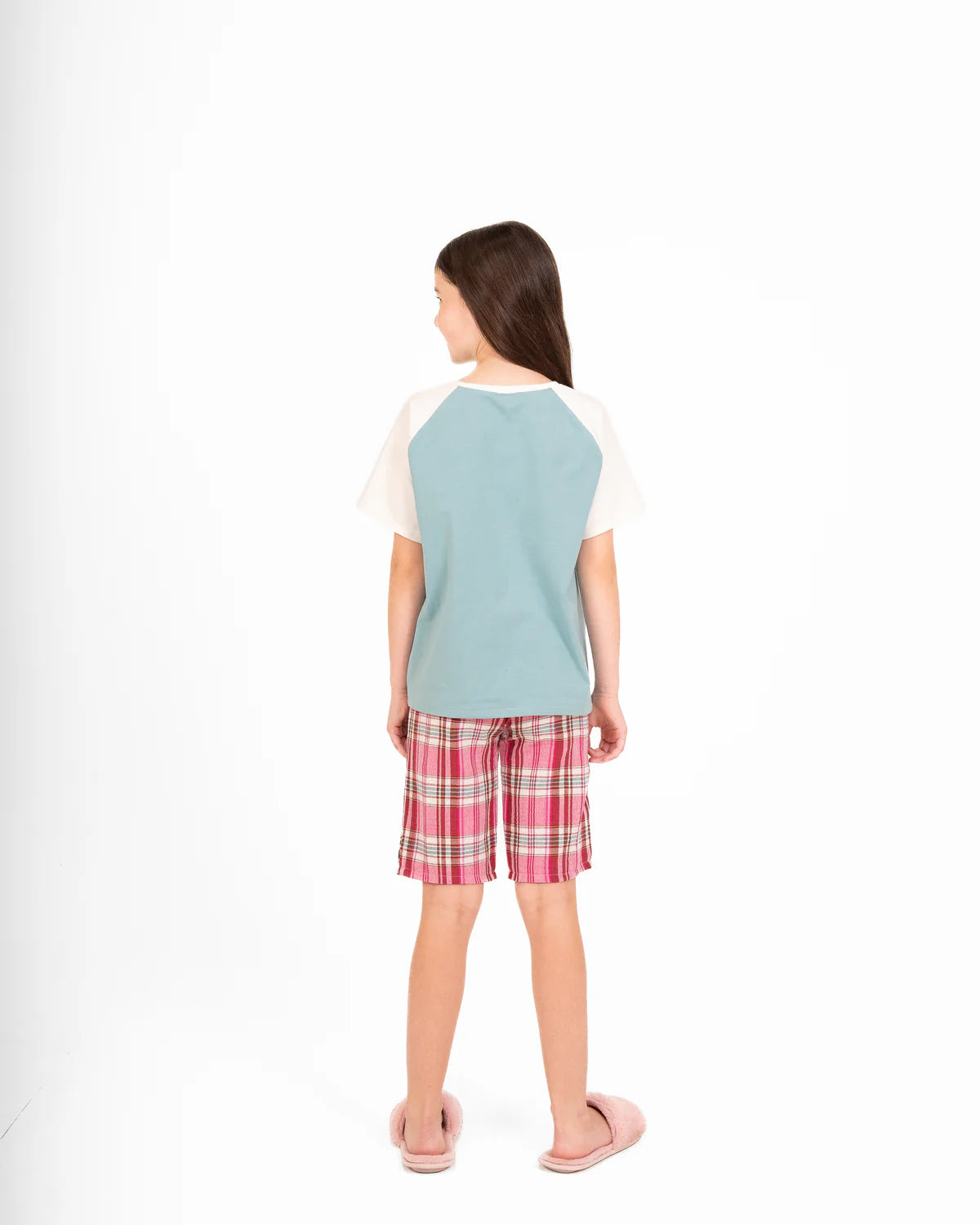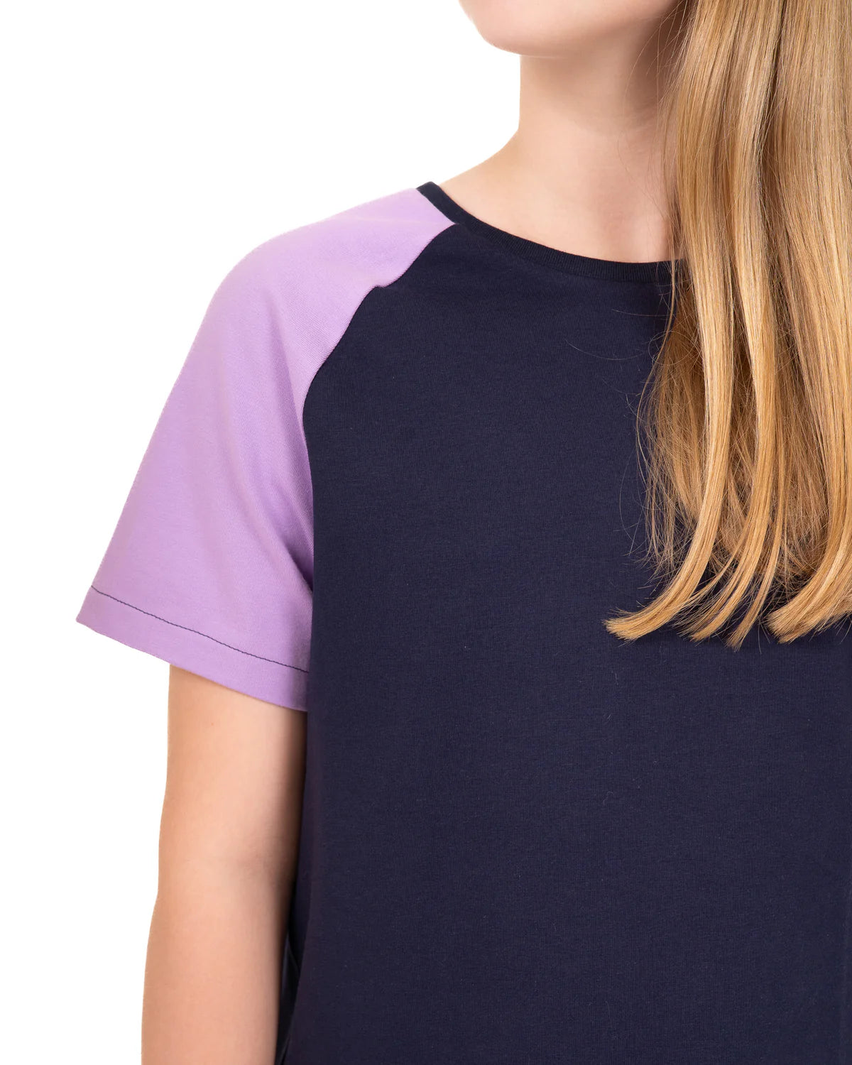 The top features a relaxed raglan sleeve, made in jersey fabric for a soft, comfortable fit. The bottoms cab be sewn in with woven or jersey, making the set perfect for mixing fabrics, playing with prints and making the most of your fabric scraps.