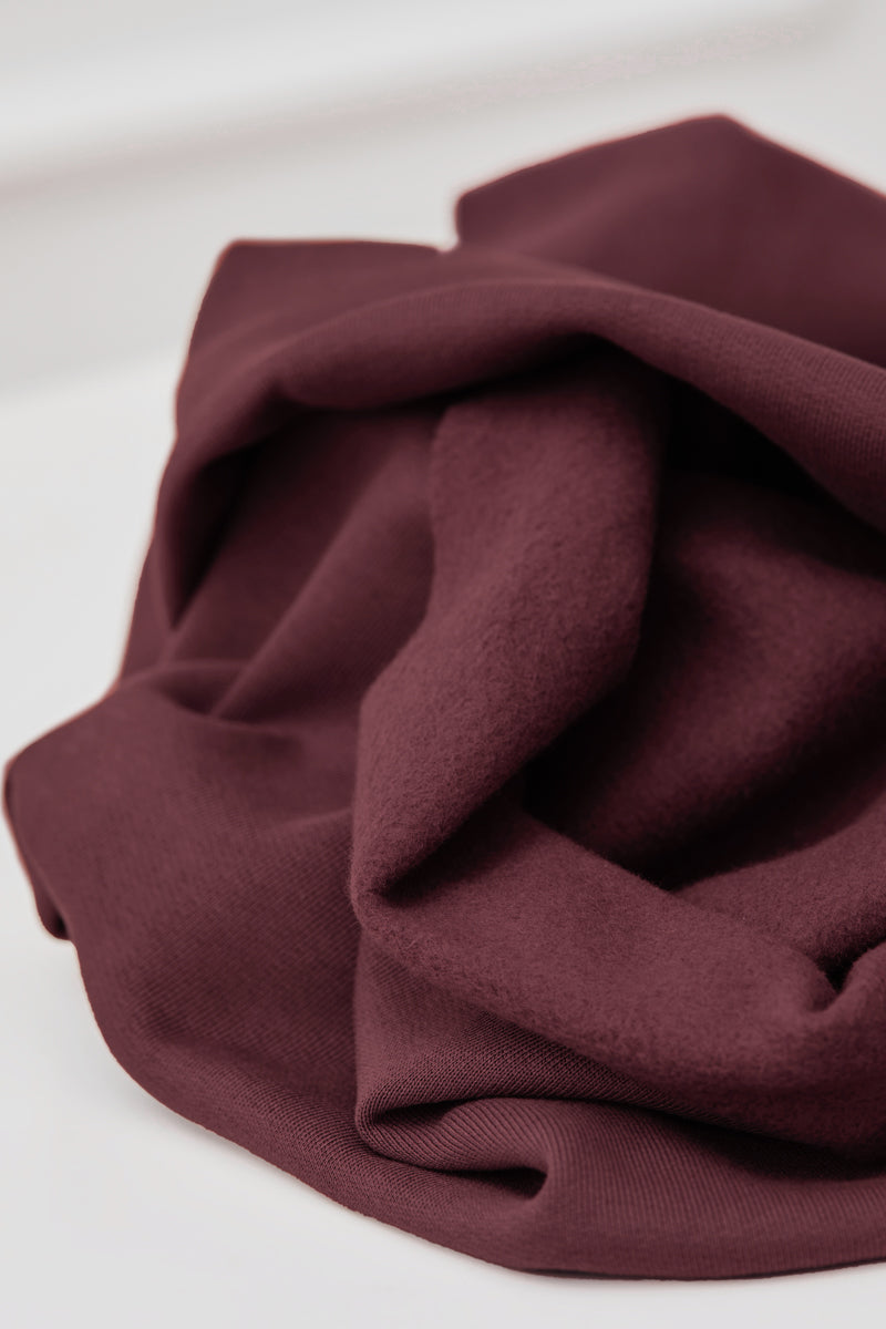 This fabric is available in multiple colours on our website. We stock perfectly matching ribbing also called Grape.