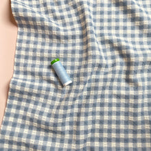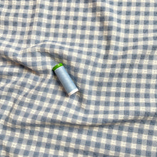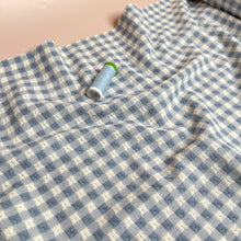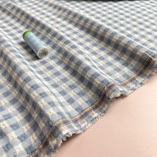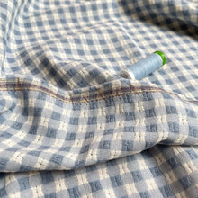 This yarn dyed cotton gingham fabric features small embroidered sections in alternating square, giving this fabric a lovely textured effect. This soft dusty blue and white gingham is perfect for spring and summer dresses, blouses, tops and skirts.