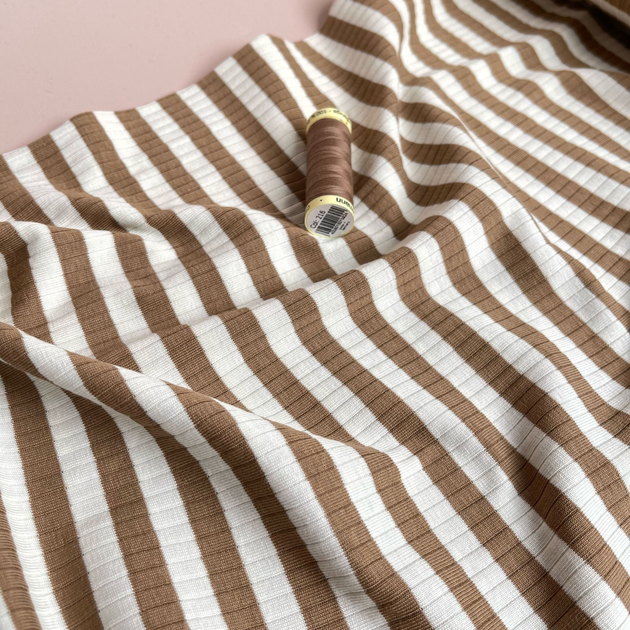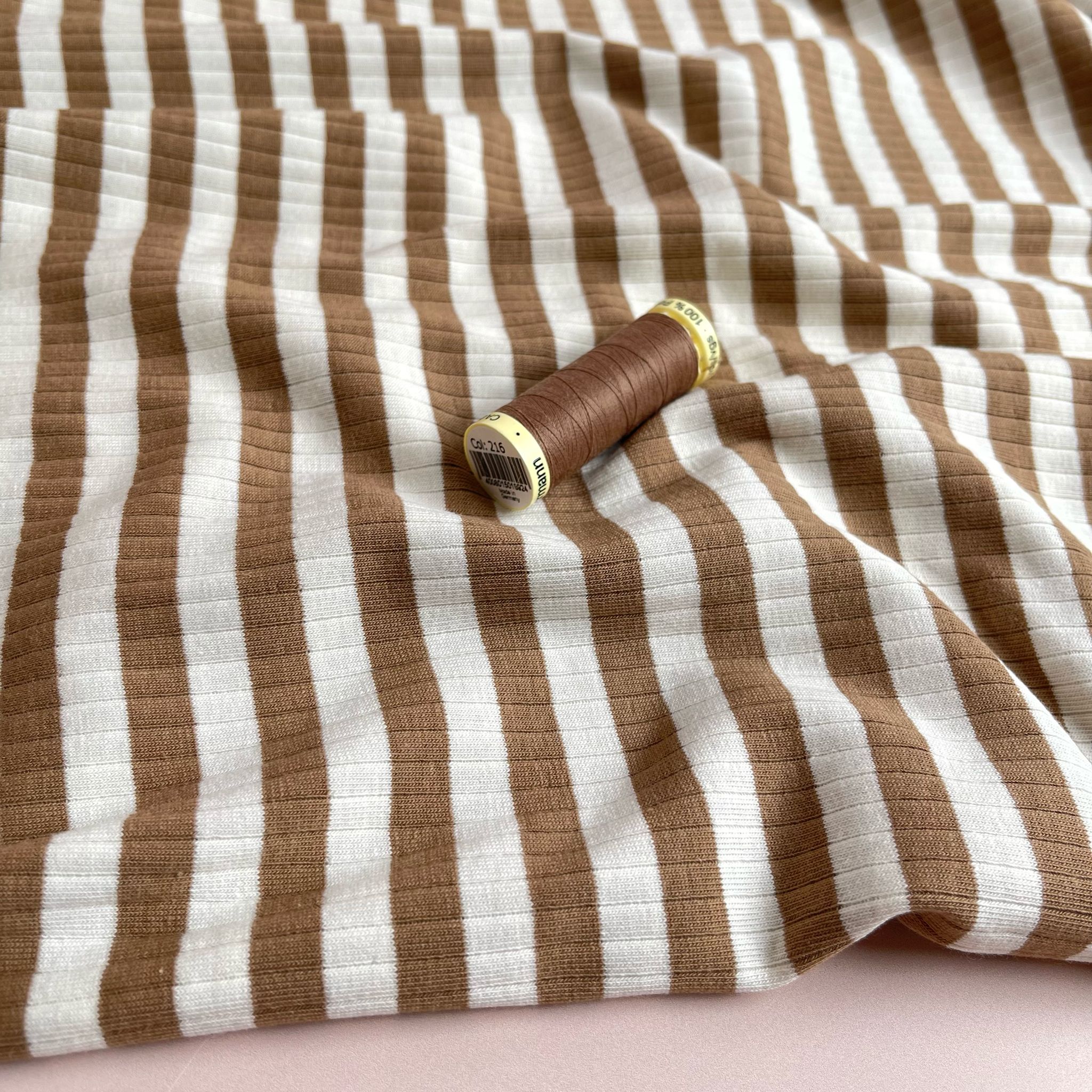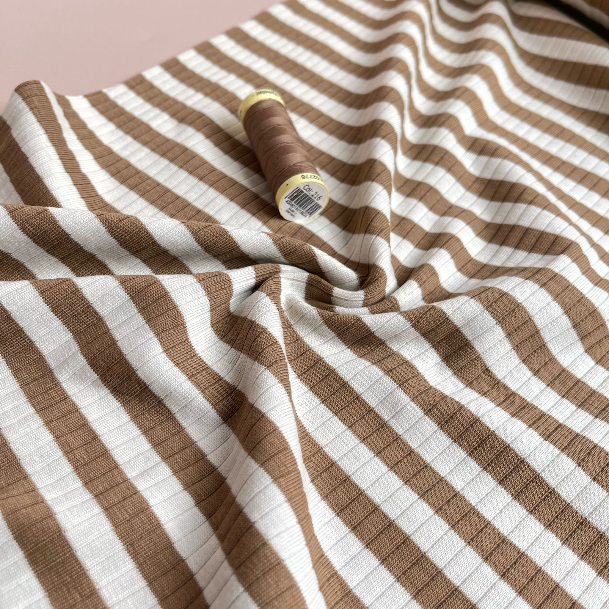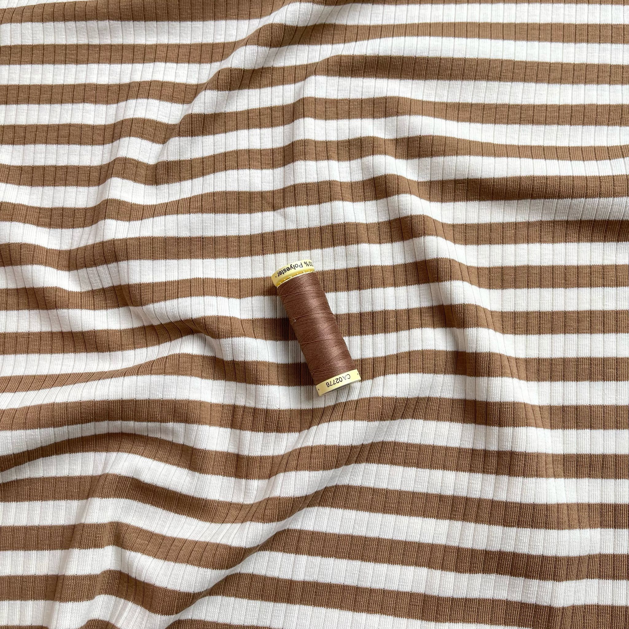Yarn Dyed Striped Cotton Ribbed Jersey in Mocha Brown and White