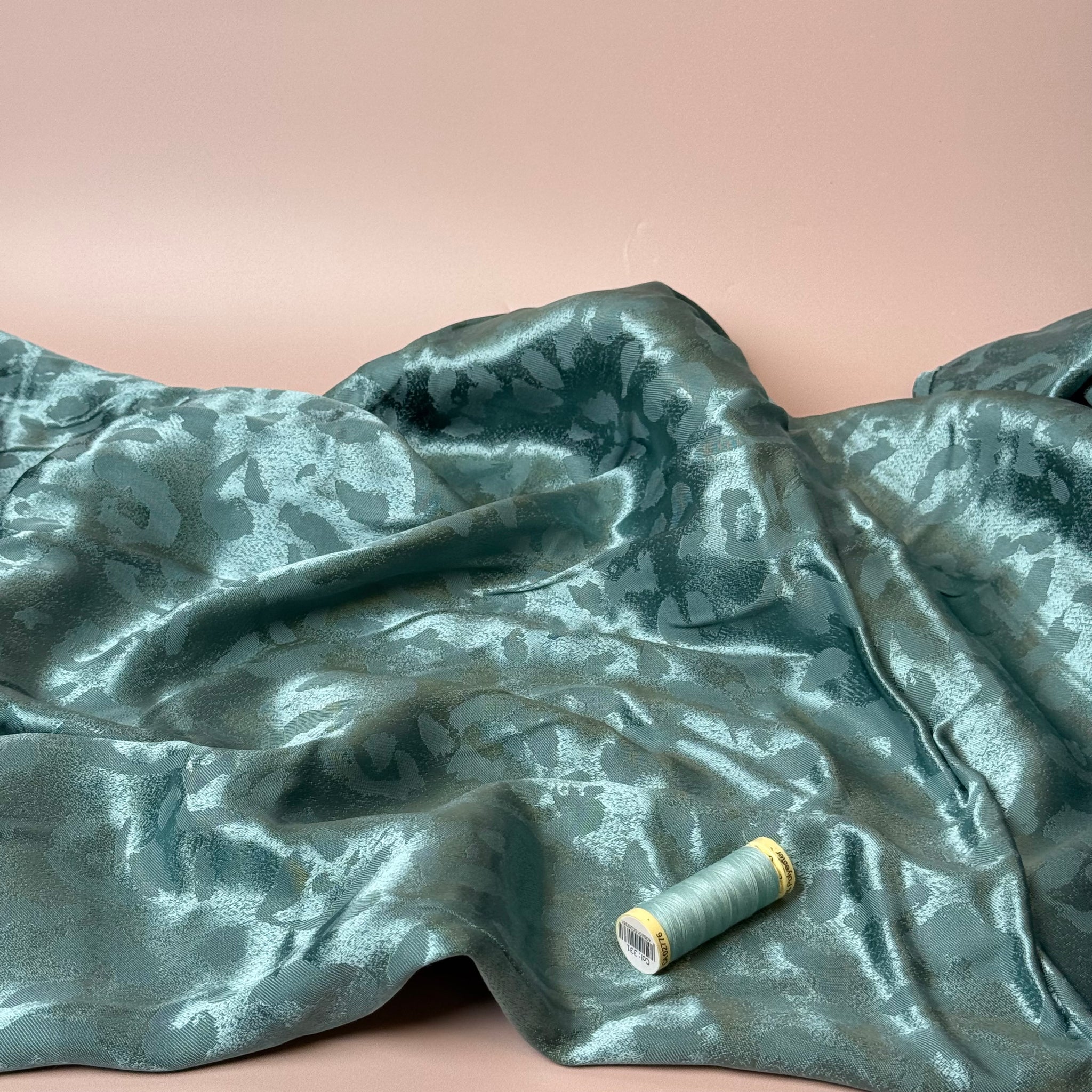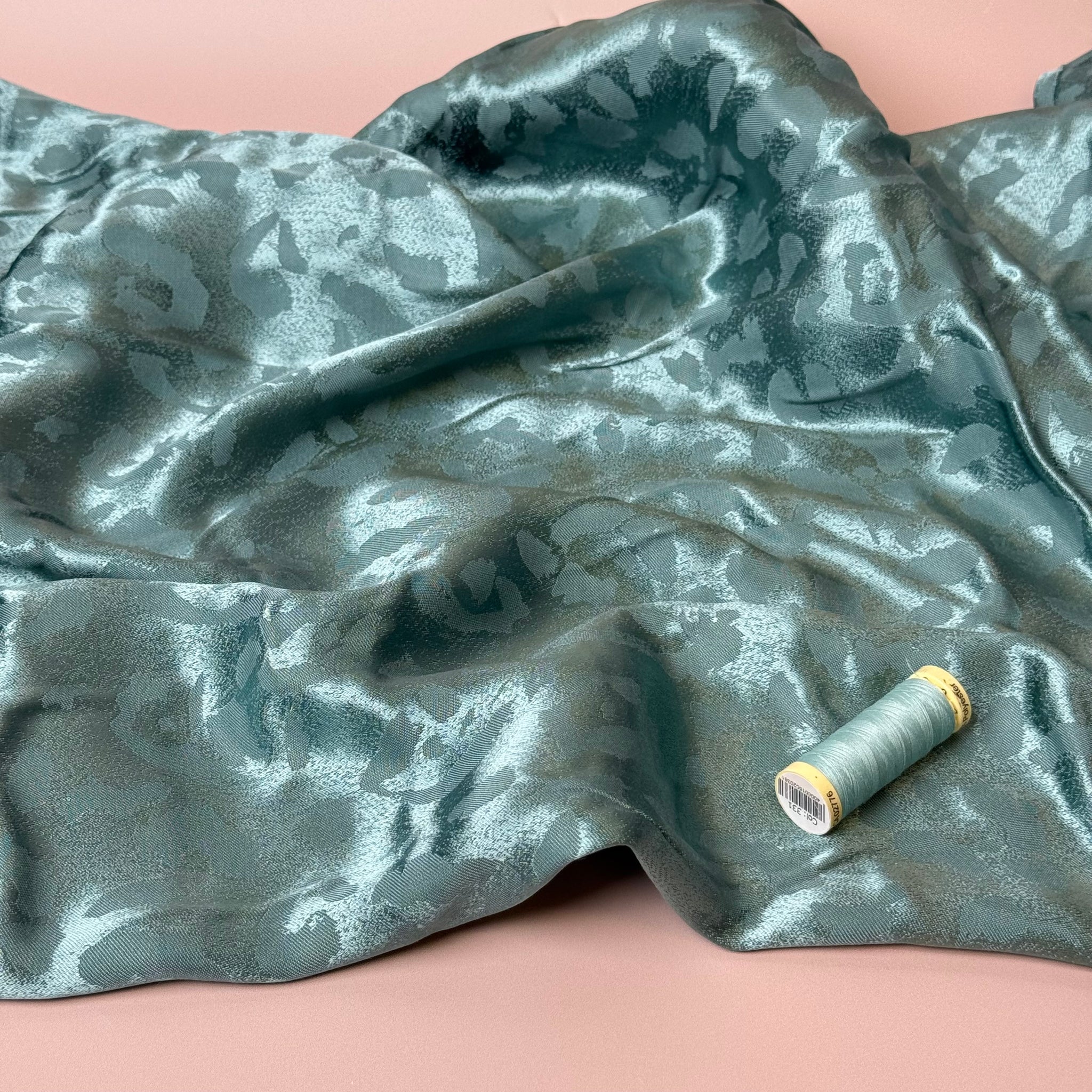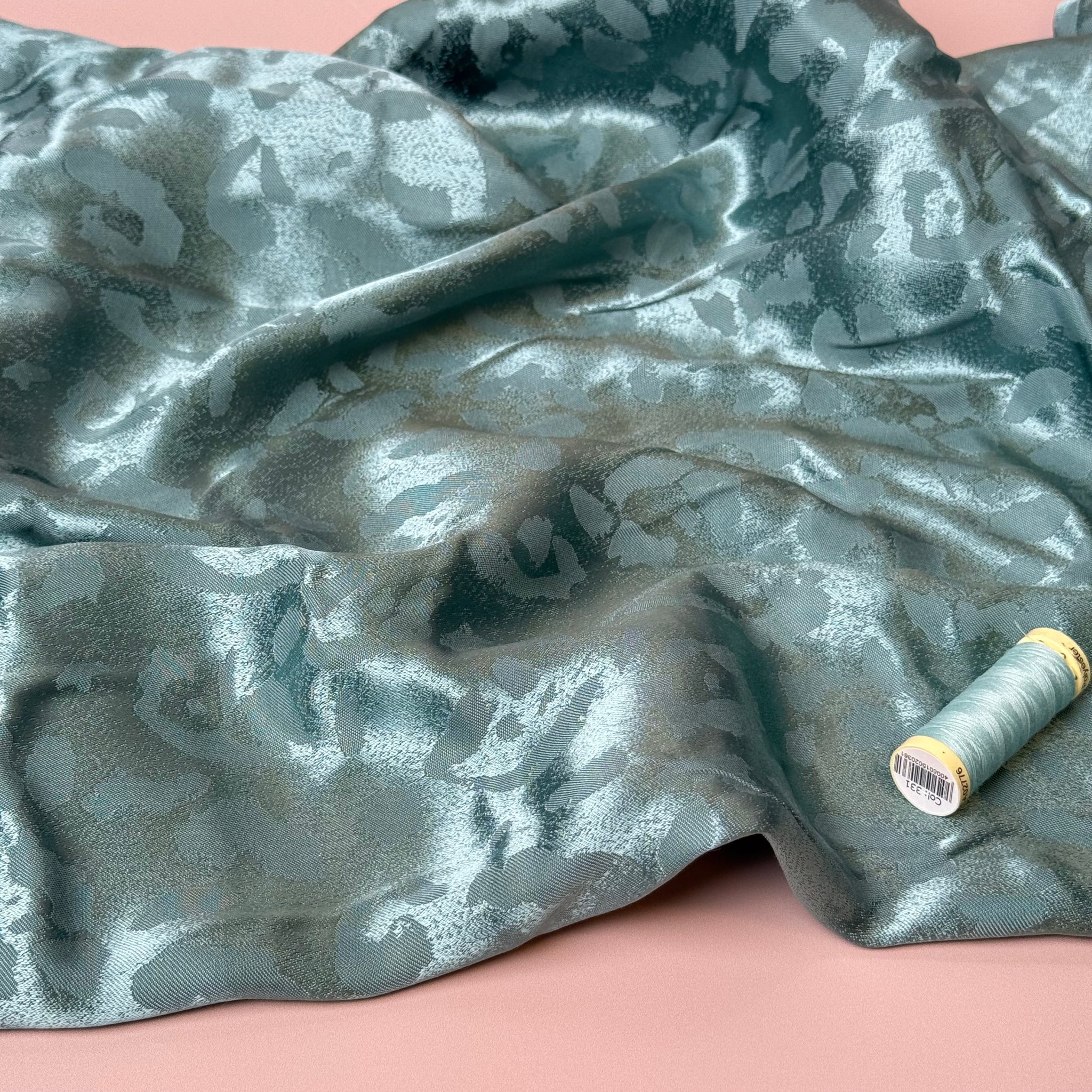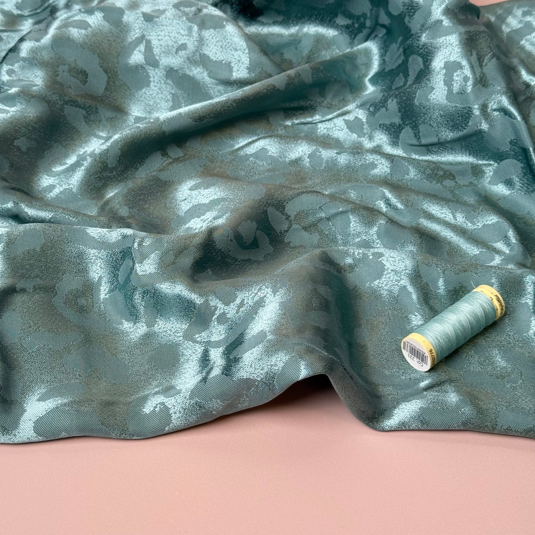 We are so pleased to be stocking this stunning Cupro & Viscose blend jacquard fabric with the animal print woven into in the same shade. The woven jacquard design adds an elegant and trendy character to this fabric; paired with the sheen of the sateen, it makes an ideal fabric for making blouses, dresses and jumpsuits for occasion wear or for daily workwear. It will also make luxurious gowns and night dress.