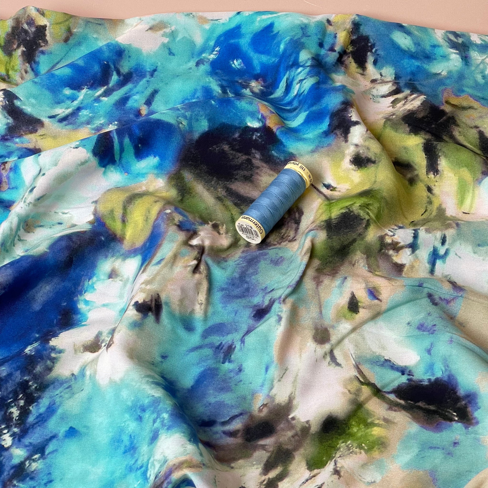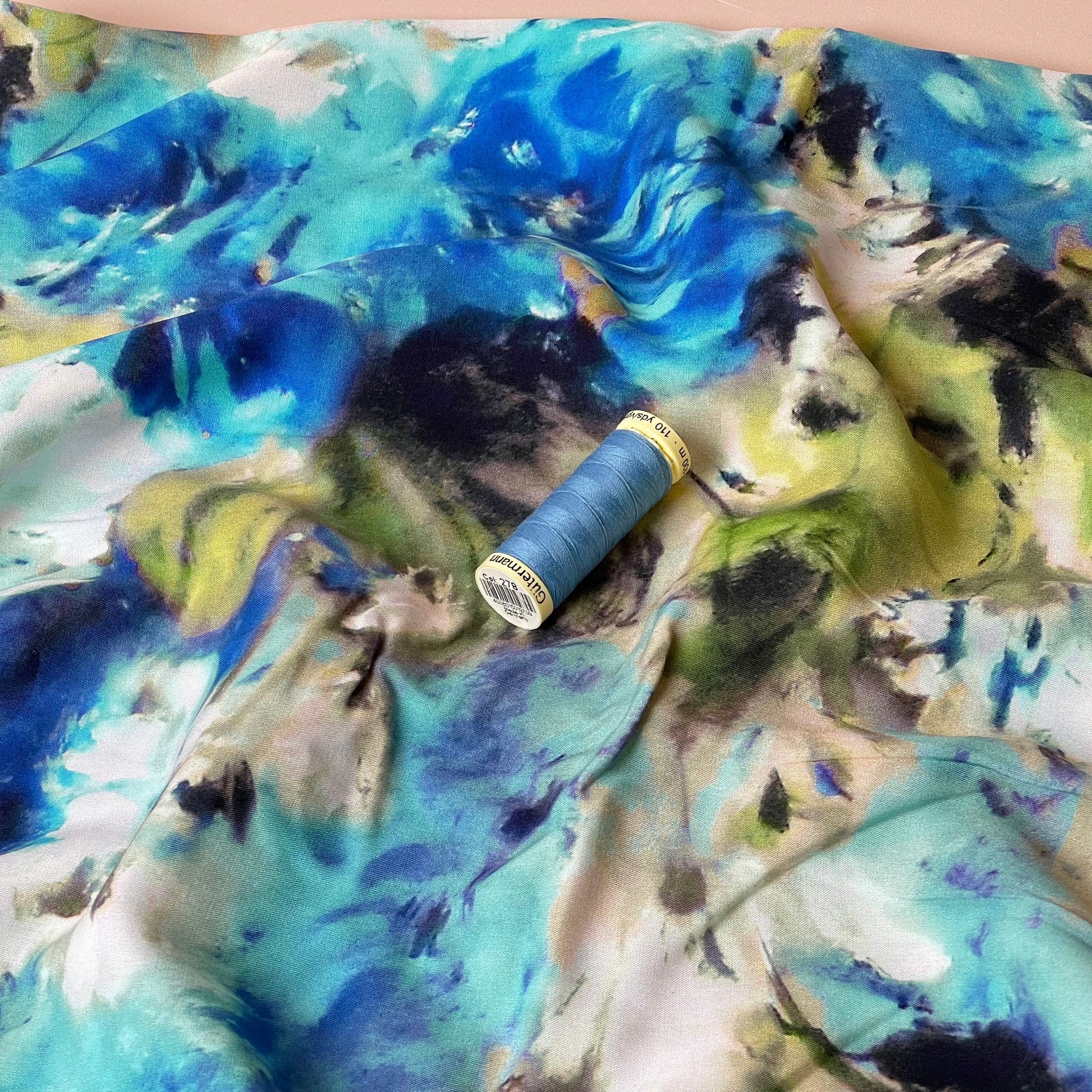 Abstract Watercolour Florals Ocean Viscose Poplin Fabric