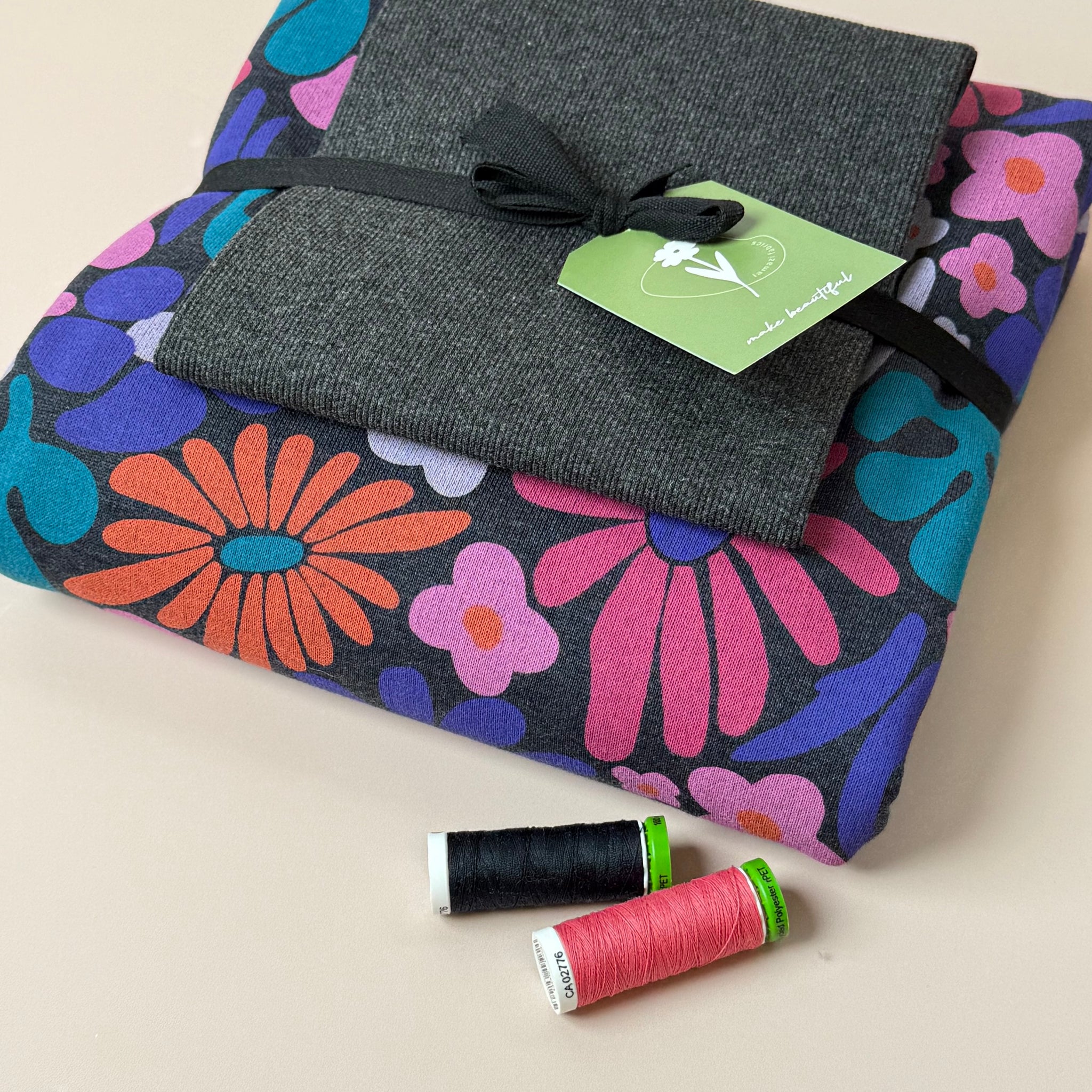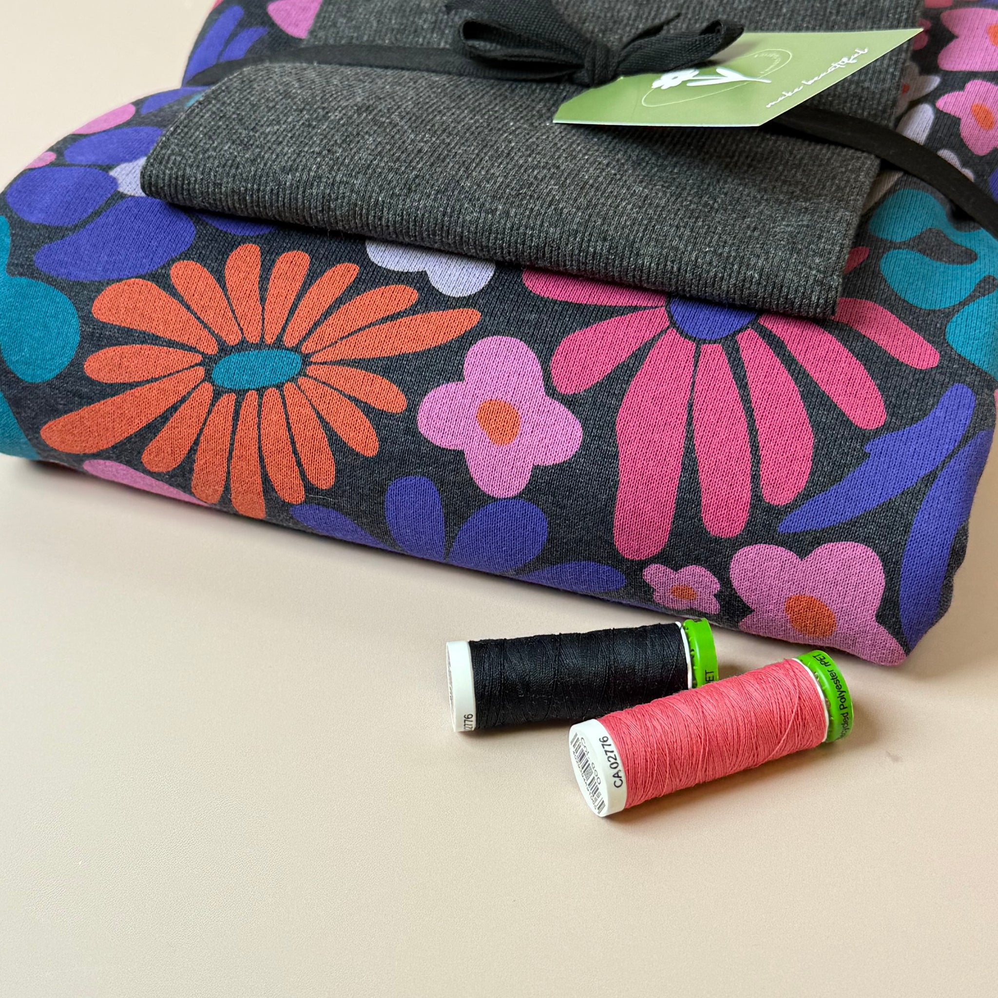 Presented in complementary and perfectly matching colours of our popular fabrics, in this bundle we paired this soft and cuddly cotton sweat-shirting with the complementary organic cuff ribbing.