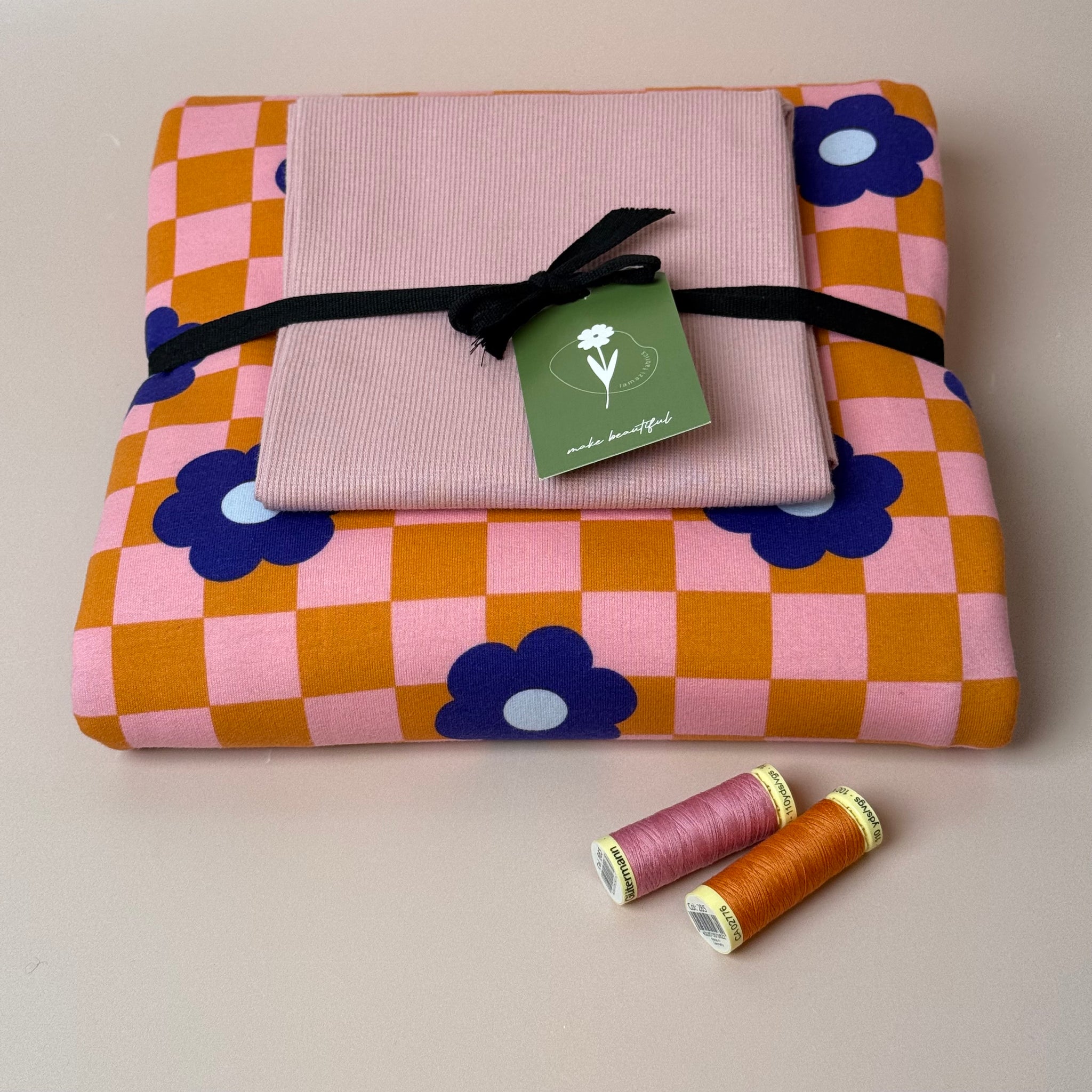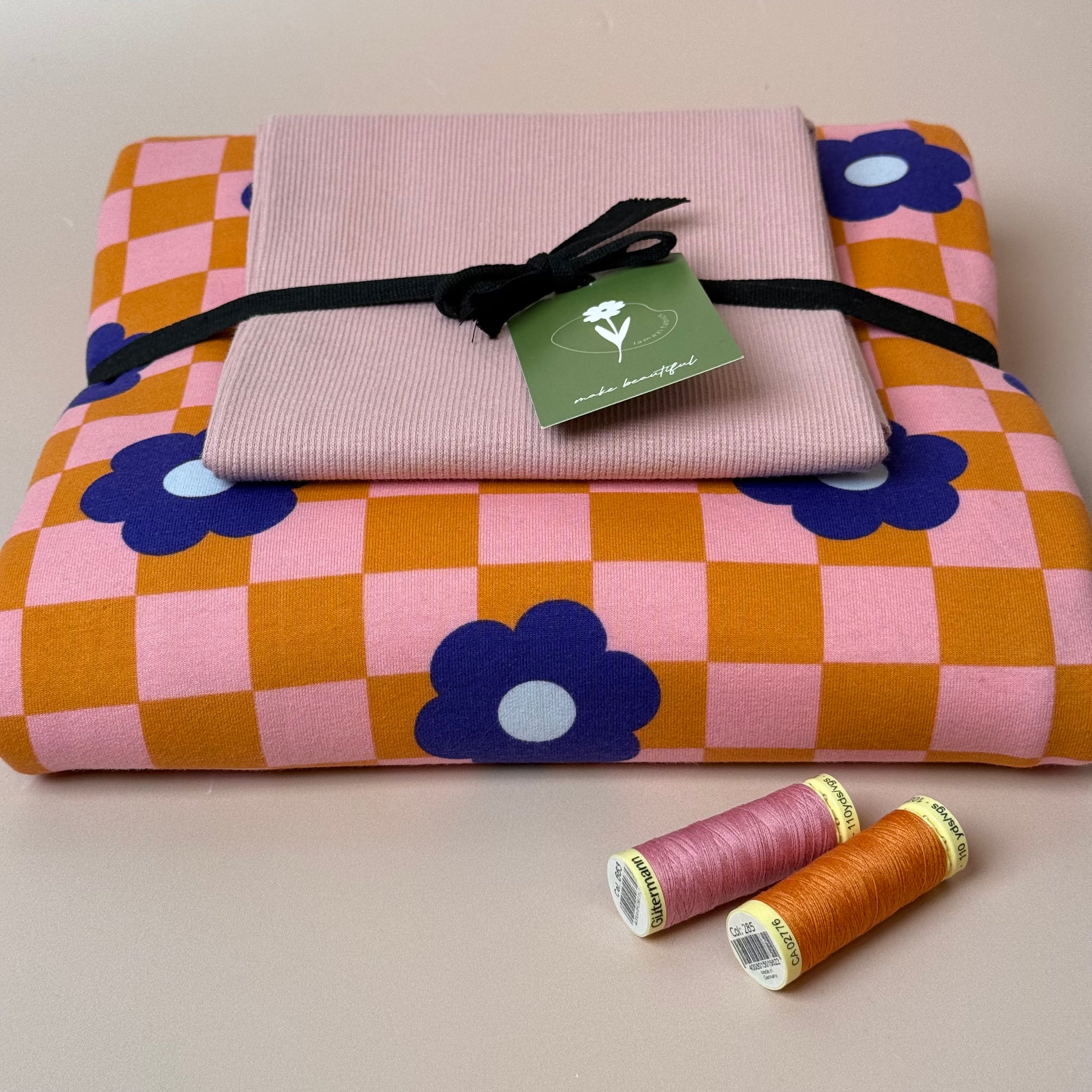 Colour Bundles - Gingham Flowers Pink Sweatshirt & Ribbing