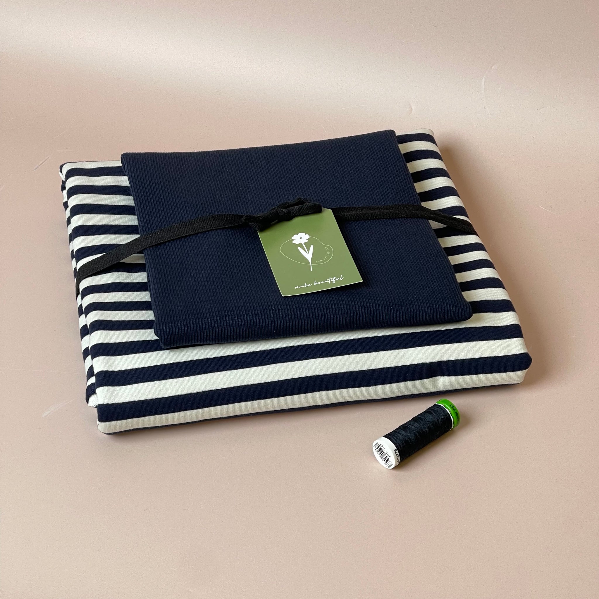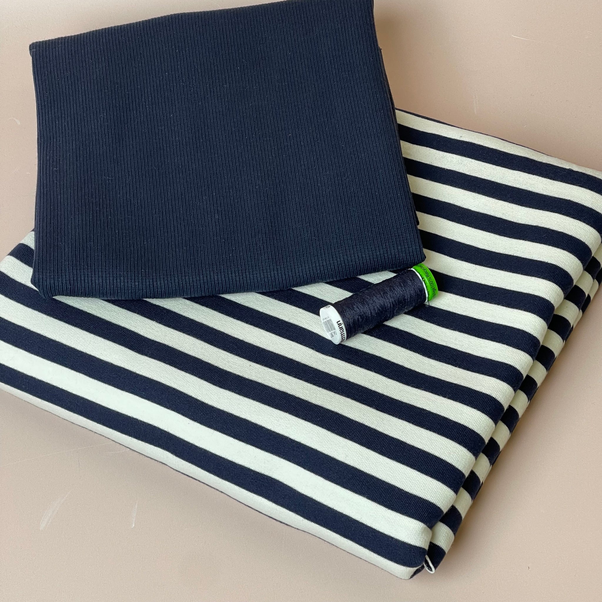 Colour Bundles - Navy Stripe Cotton French Terry & Ribbing