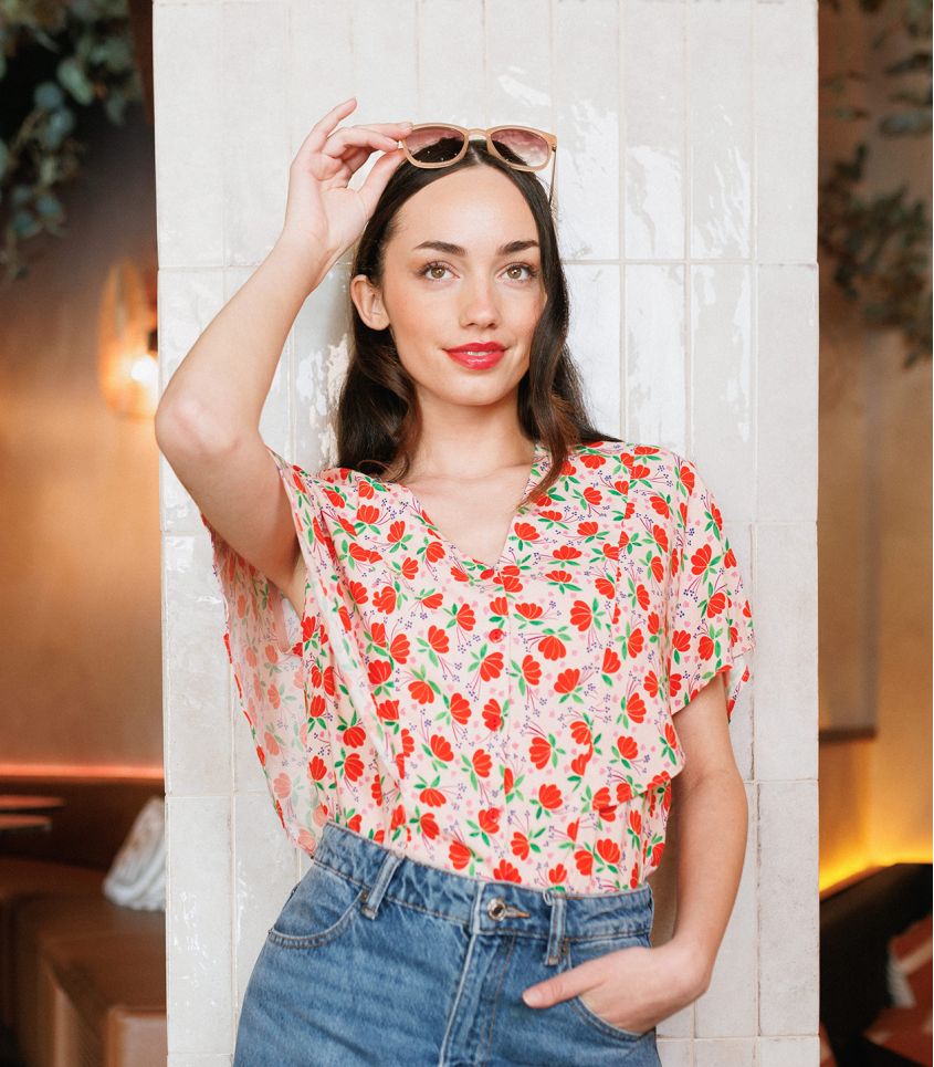 Heart of Flower viscose is a bold floral print where flower petals burst forth against a nude background. The contrasting colours create a truly striking visual effect—let's have fun! A truly striking fabric for pieces that won't go unnoticed.