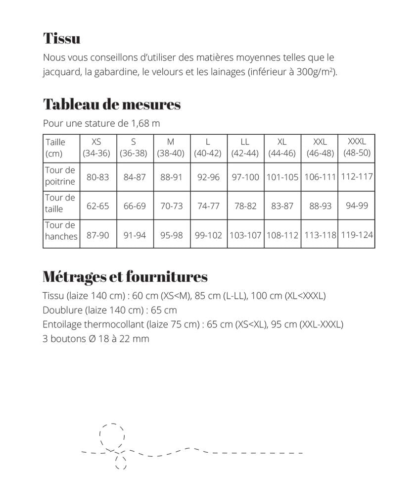 Fabric: 60 cm (XS-M), 85cm (L), 100cm (XL-XXXL)