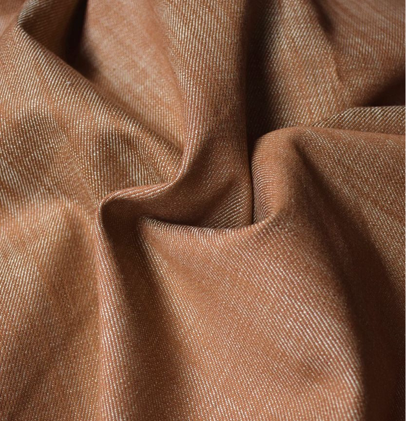 This is a beautiful and soft pure cotton denim fabric in toffee brown made in Italy.