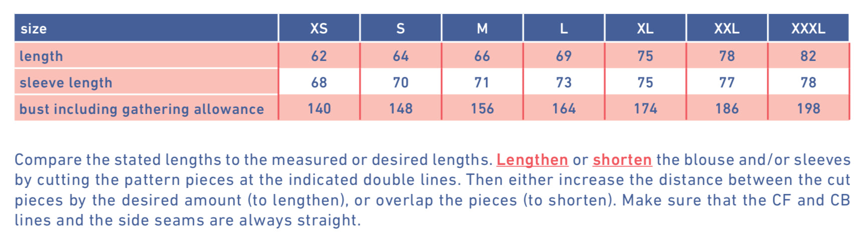The Caren blouse looks best in supple, thin, and slightly sheer fabrics. They enhance the romantic look of the design. Think muslin, chiffon, voile, or other fabrics with a fine texture. Choose fabrics that move elegantly and are subtly transparent, so that the balance between airiness and volume is just right. Stiffer fabrics, such as batiste, are also suitable.
