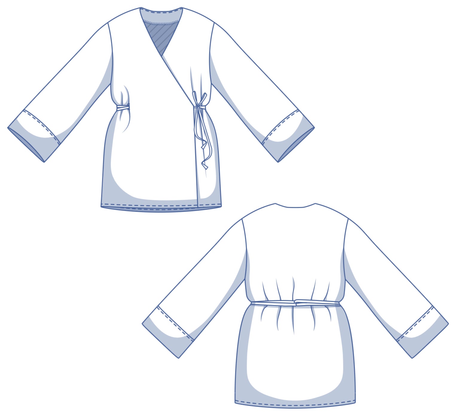 For the Ronya wrap blouse, choose supple fabrics with a beautiful drape. Think lyocell twill, satin, acetate, lurex, charmeuse, silk, or crepe de chine. These materials give the jacket a luxurious look and beautifully highlight the lines of the design. Be careful not to choose fabrics that are too thin. They will not provide enough body.