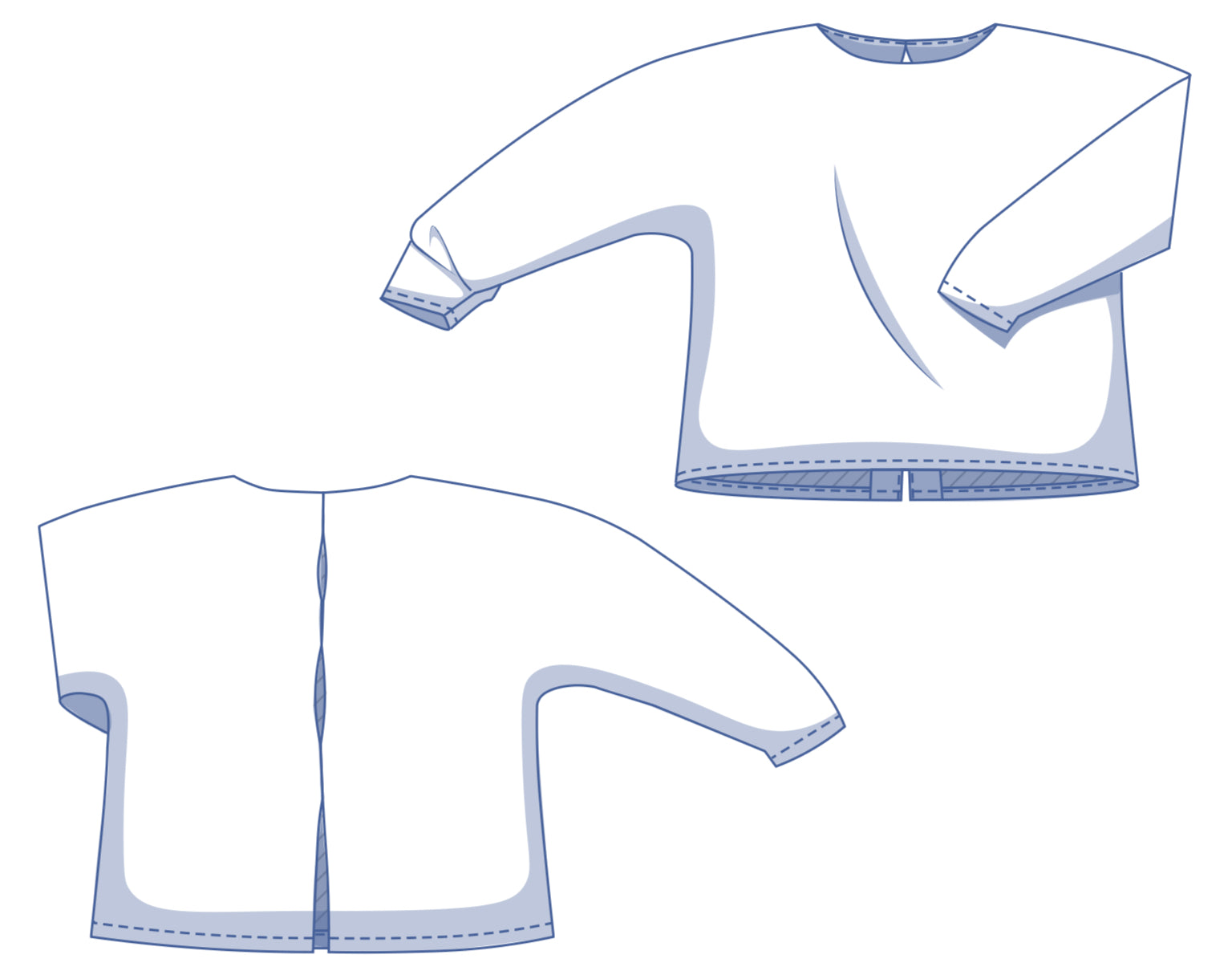 Sanna is one of those tops that seems simple at first glance, but reveals its secrets at second glance. The long, attached sleeves feature pleated details at the cuffs, creating a beautiful shape and a soft, stylish flow. Sanna keeps it clean with a round neckline at the front, while the back features original peepholes for that subtle wow factor. The neck and centre back are neatly finished with facing, so that the inside also looks perfect. Sanna is proof that you don't need frills to stand out: clean, quirky, and ideal for those who love subtle details.