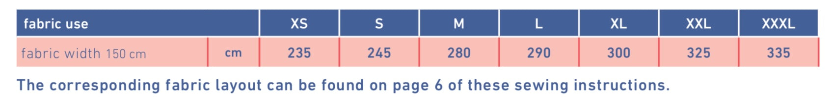- Fabric: see table