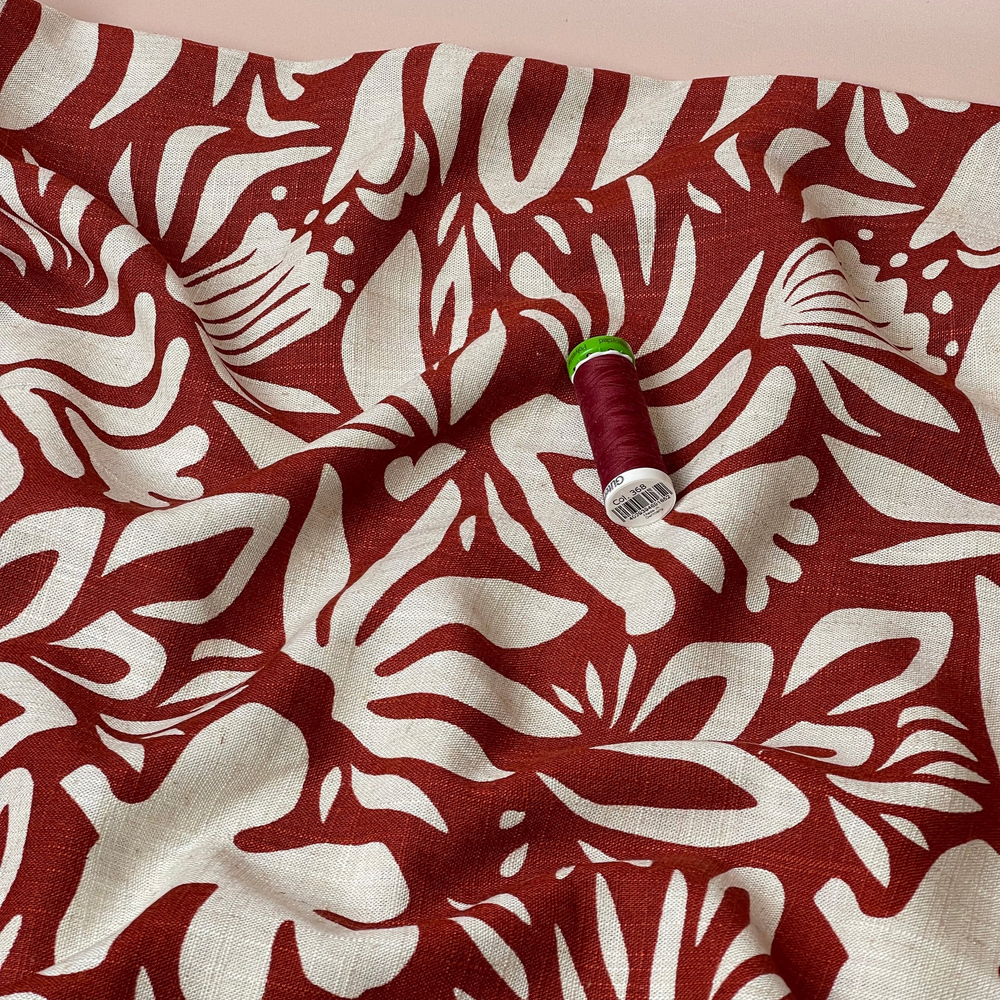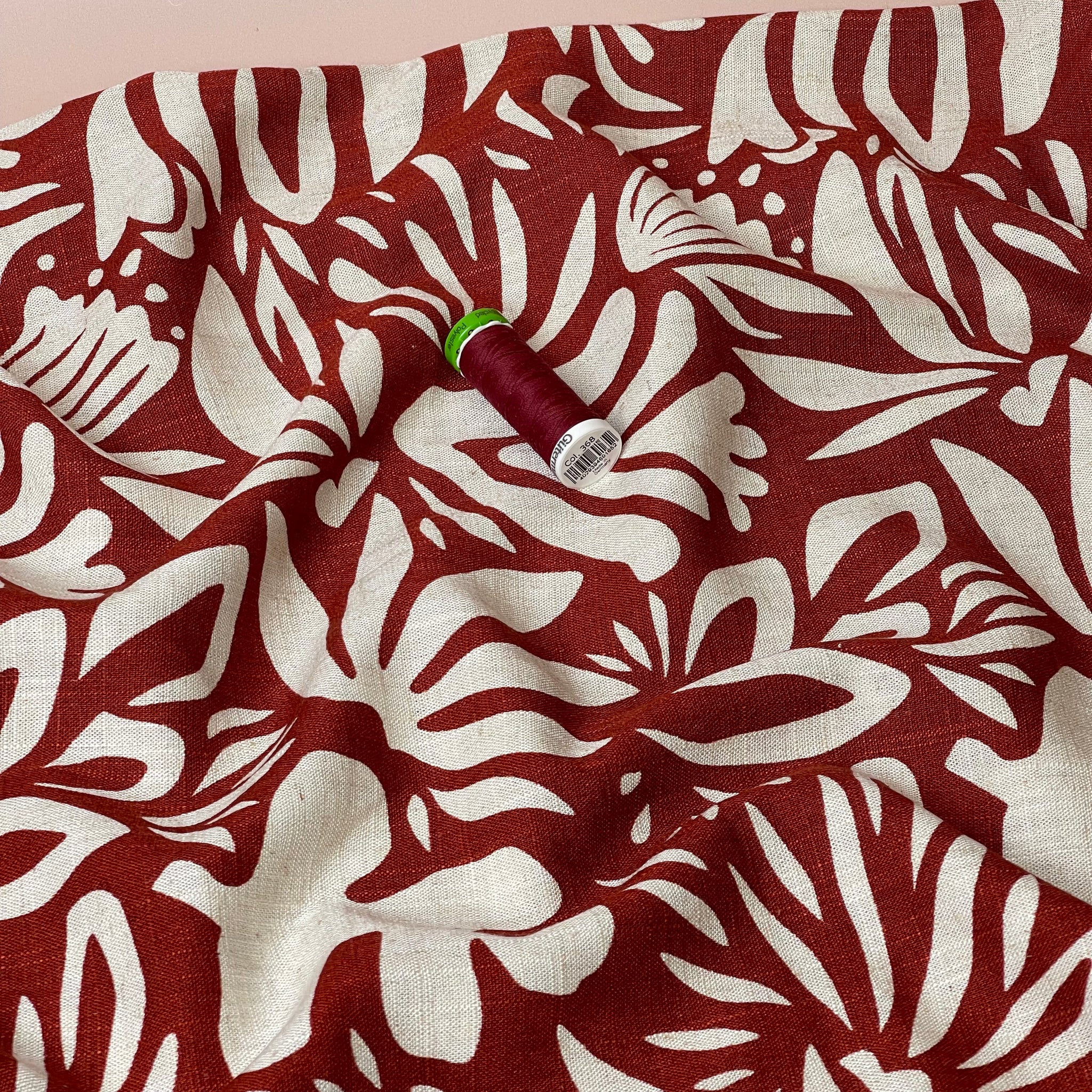Graphic Plants Burnt Orange Viscose Linen Fabric