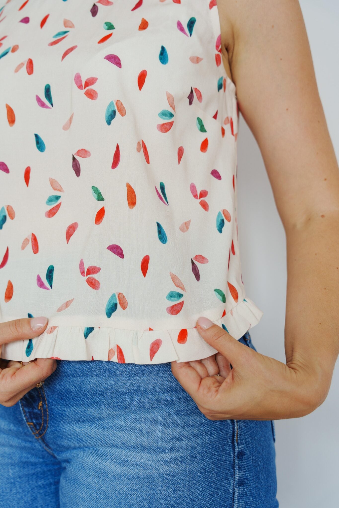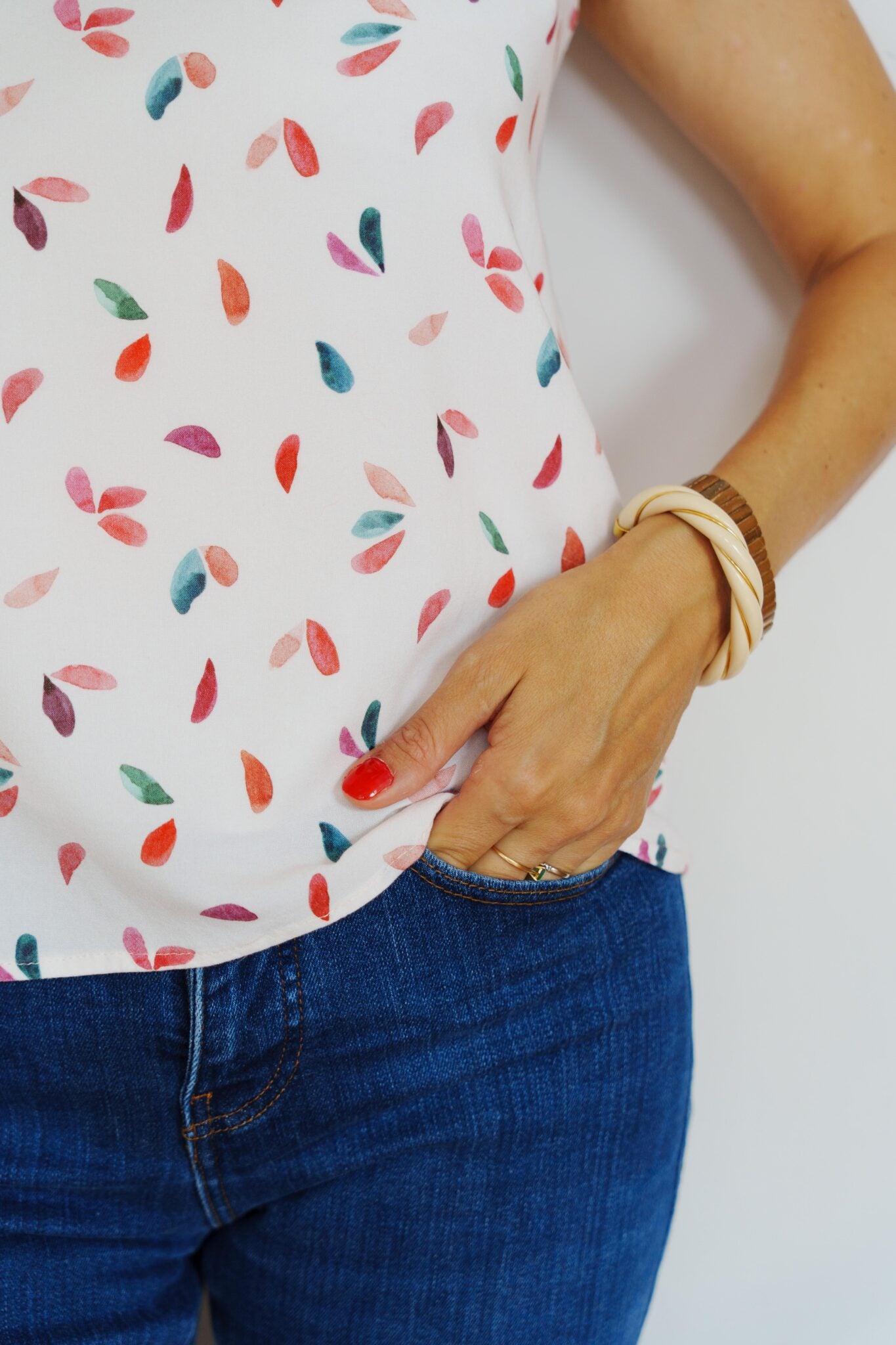 Versatile and feminine, Alia is a sleeveless top adapts to all your desires thanks to its many variations! Depending on your style, choose a buttoned back with a V-neckline, a simple and refined version, or an open back for a touch of lightness. The hem can be structured with a yoke or enhanced with a ruffle. It works just as well with a fluid fabric for an airy look as with a structured fabric for a more defined silhouette. A wardrobe essential to customise as you please!