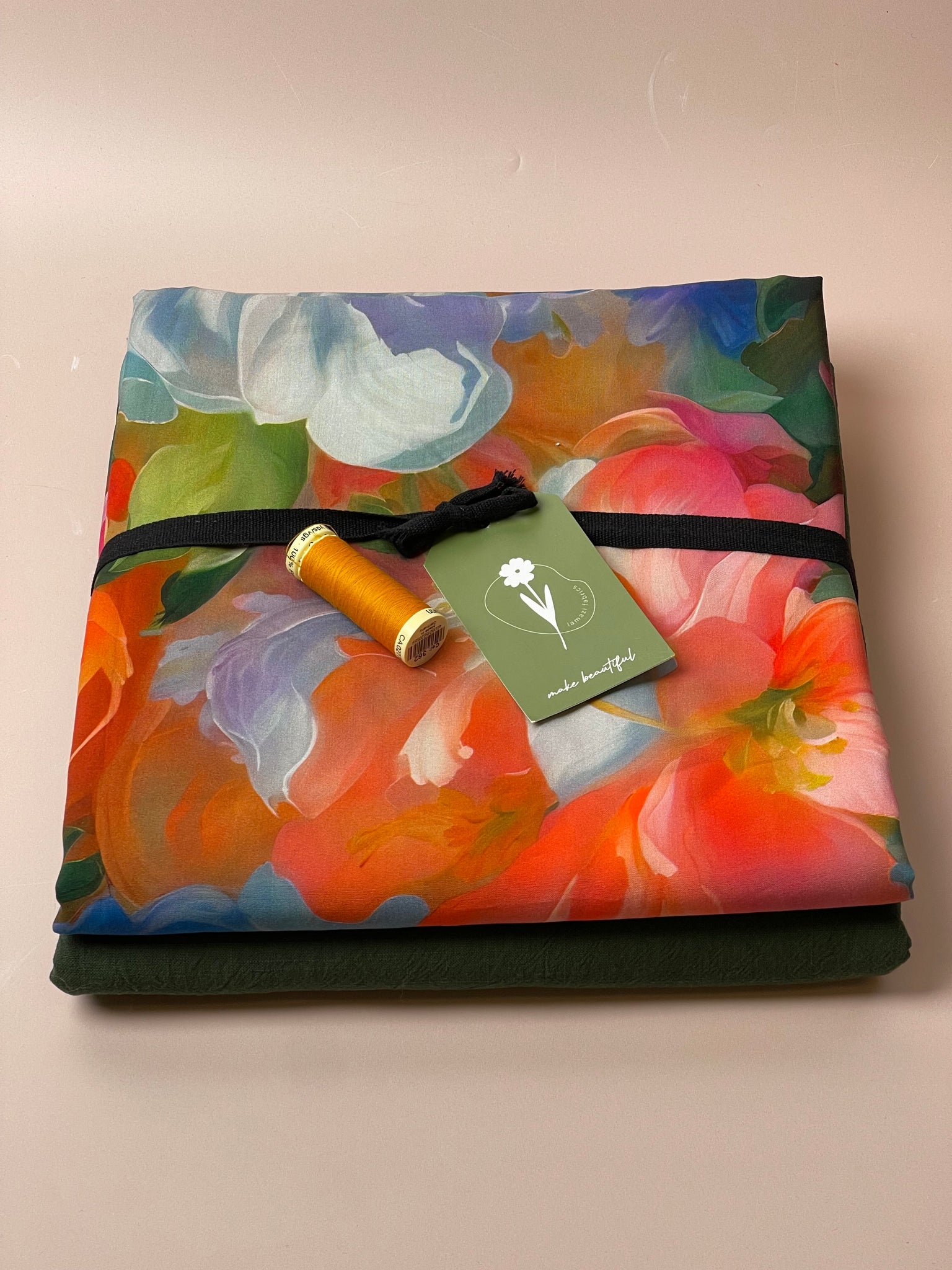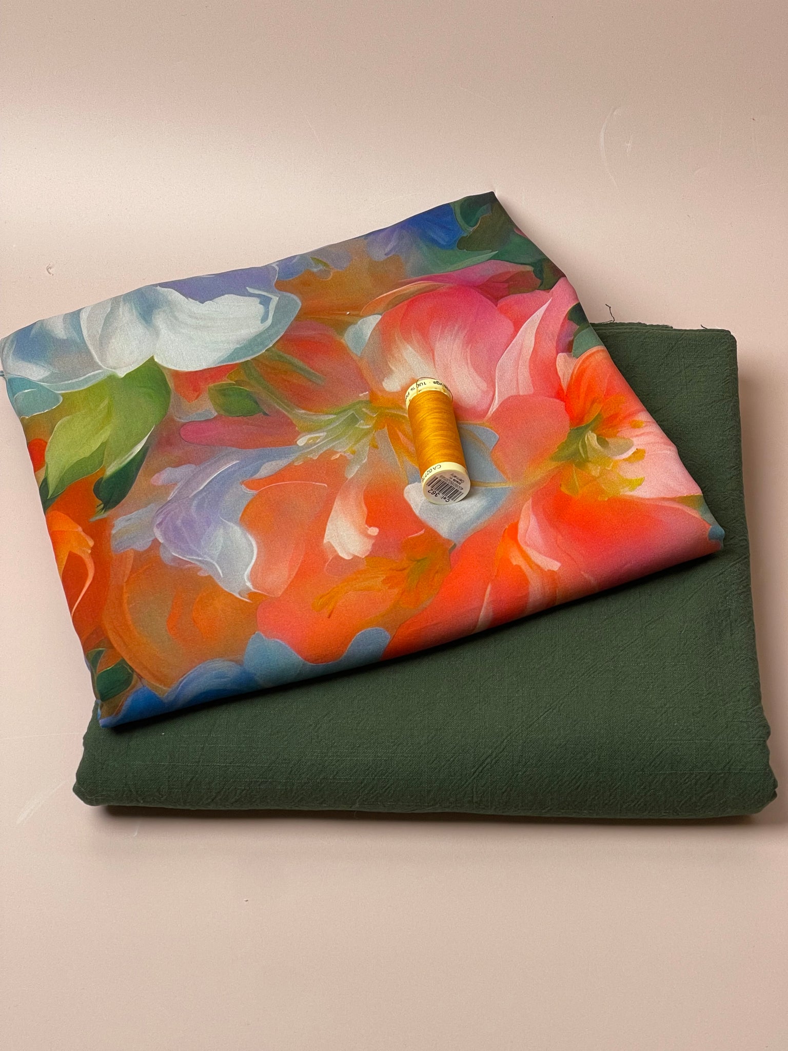 Make an Outfit Colour Bundle - Painted Rose Garden Viscose with Forest Green Washed Cotton