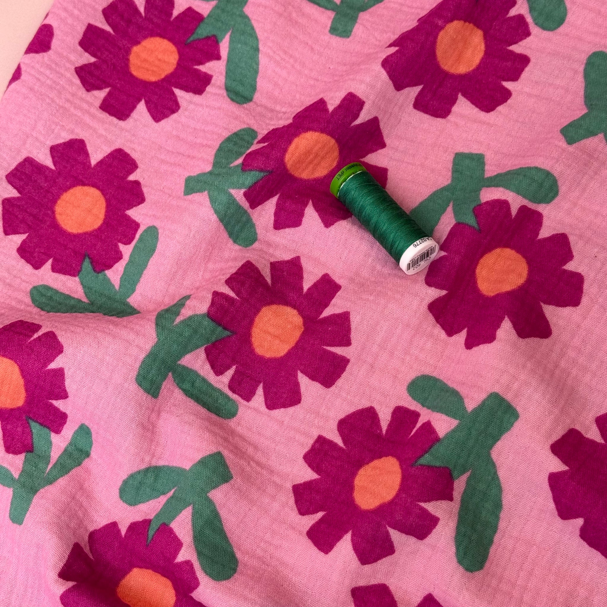Pink Flowers GOTS Organic Cotton Double Gauze
