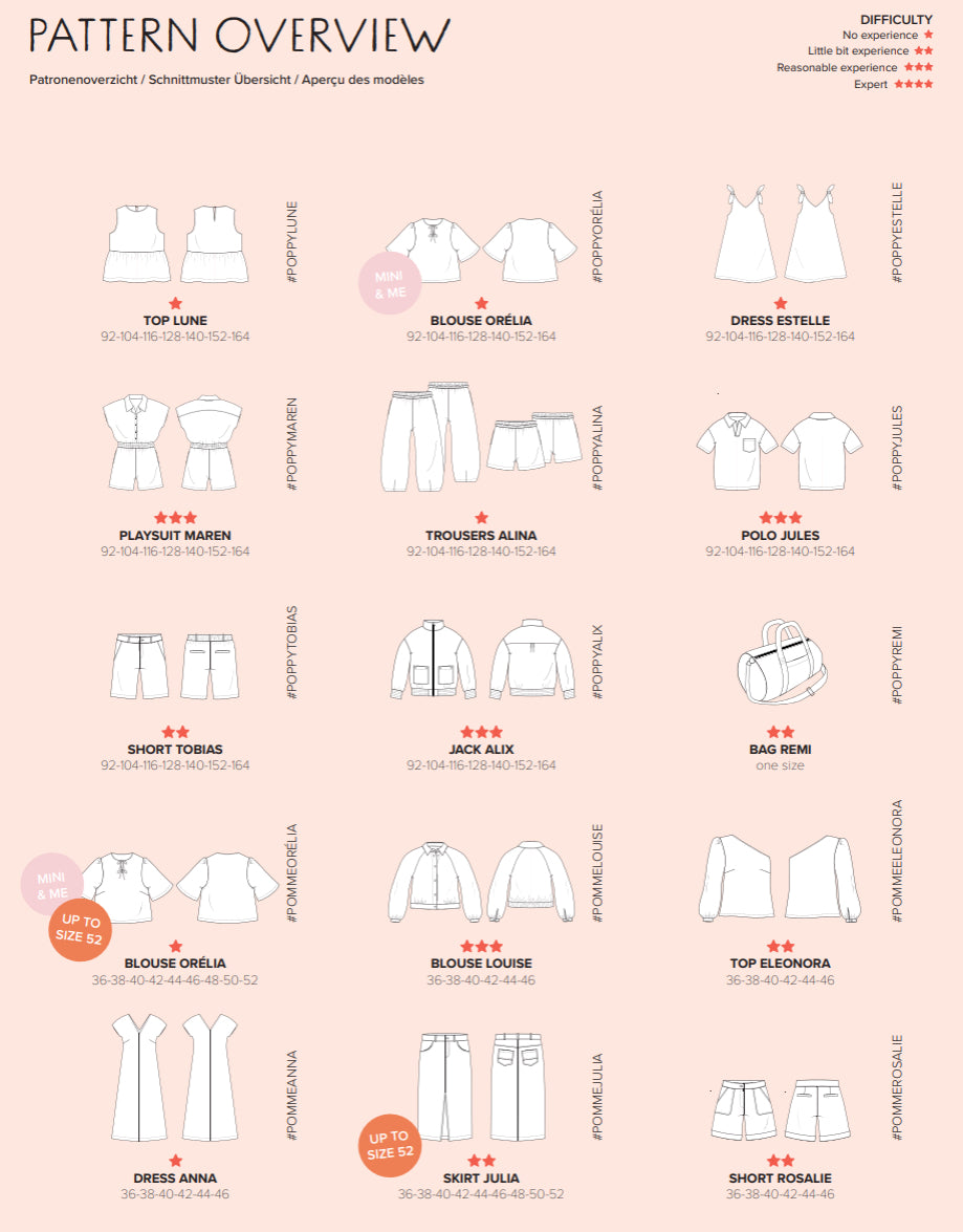 Poppy Meets Pommé Issue 26 is here. This pattern magazine comes with 9 patterns for boys and girls, 6 patterns for women, including a Mini & Me Blouse. Patterns range sizes for all kids ages.