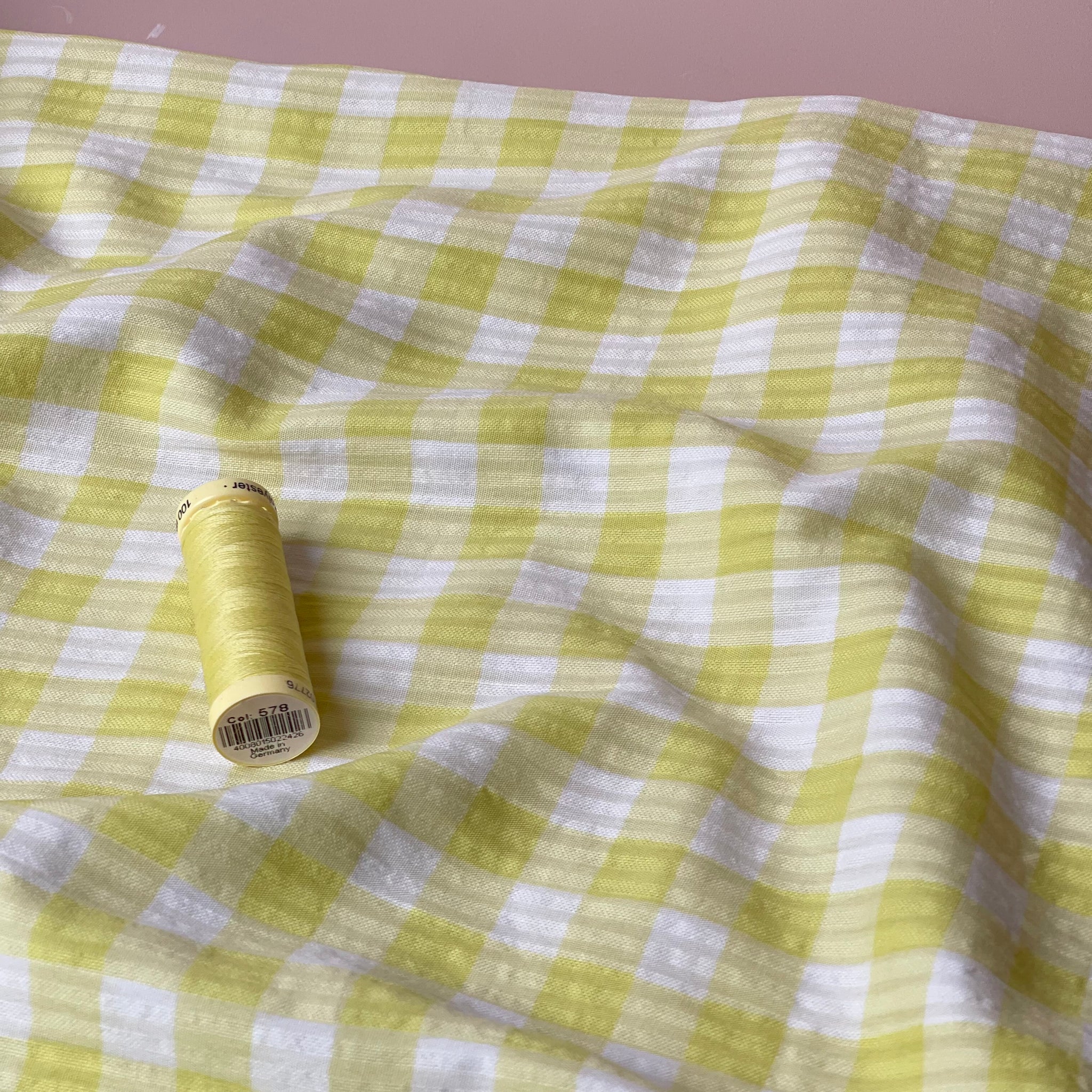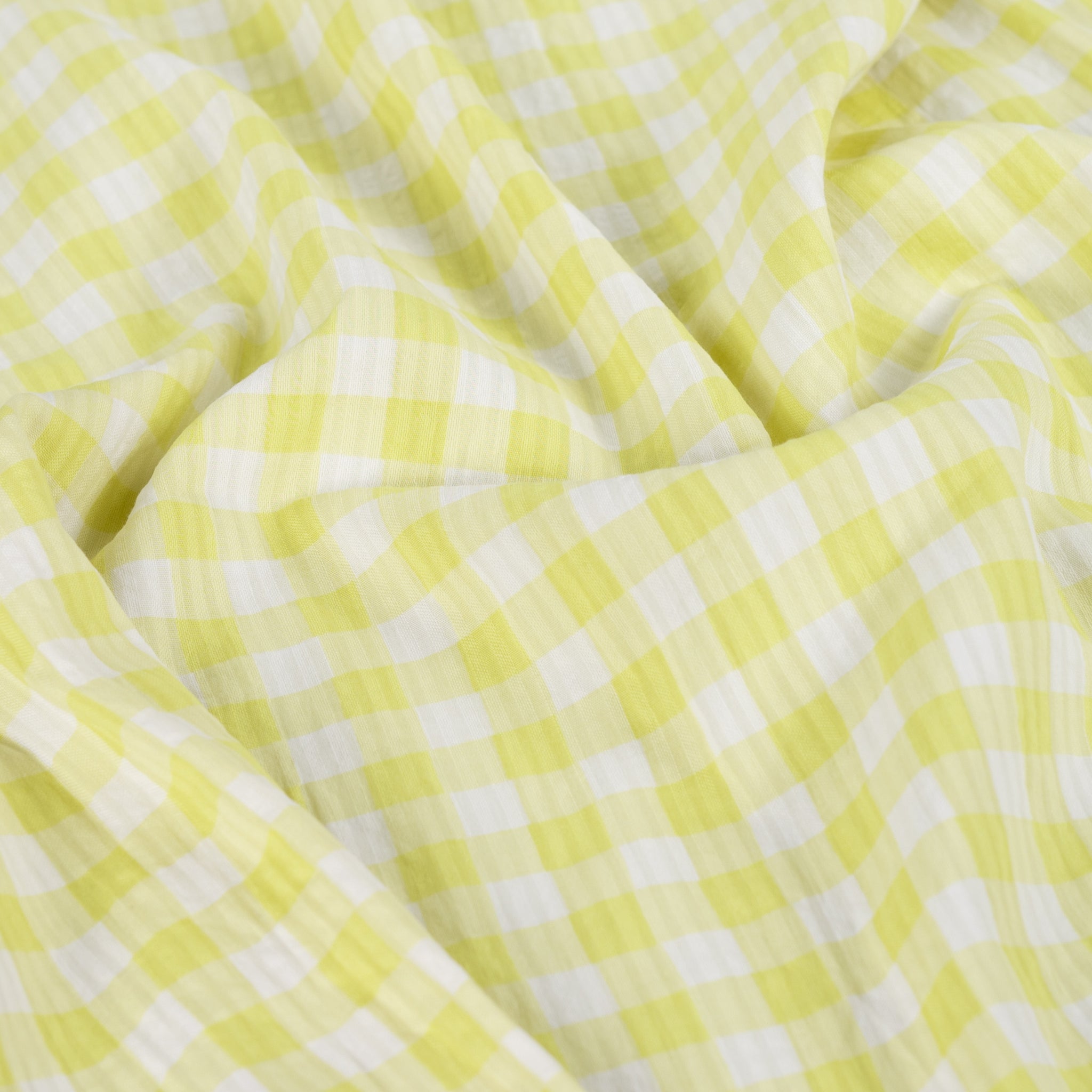 Yellow Gingham Cotton Seersucker Fabric