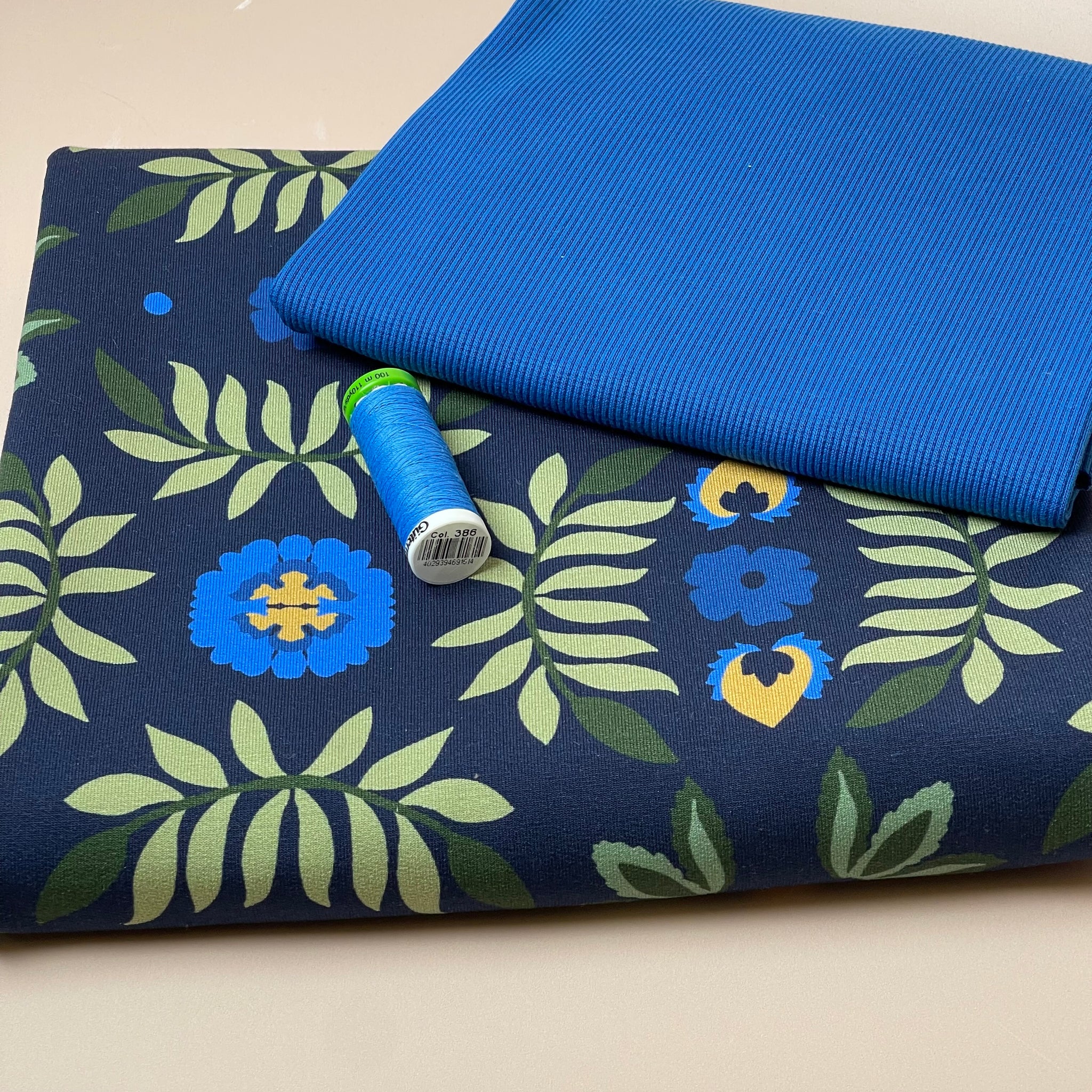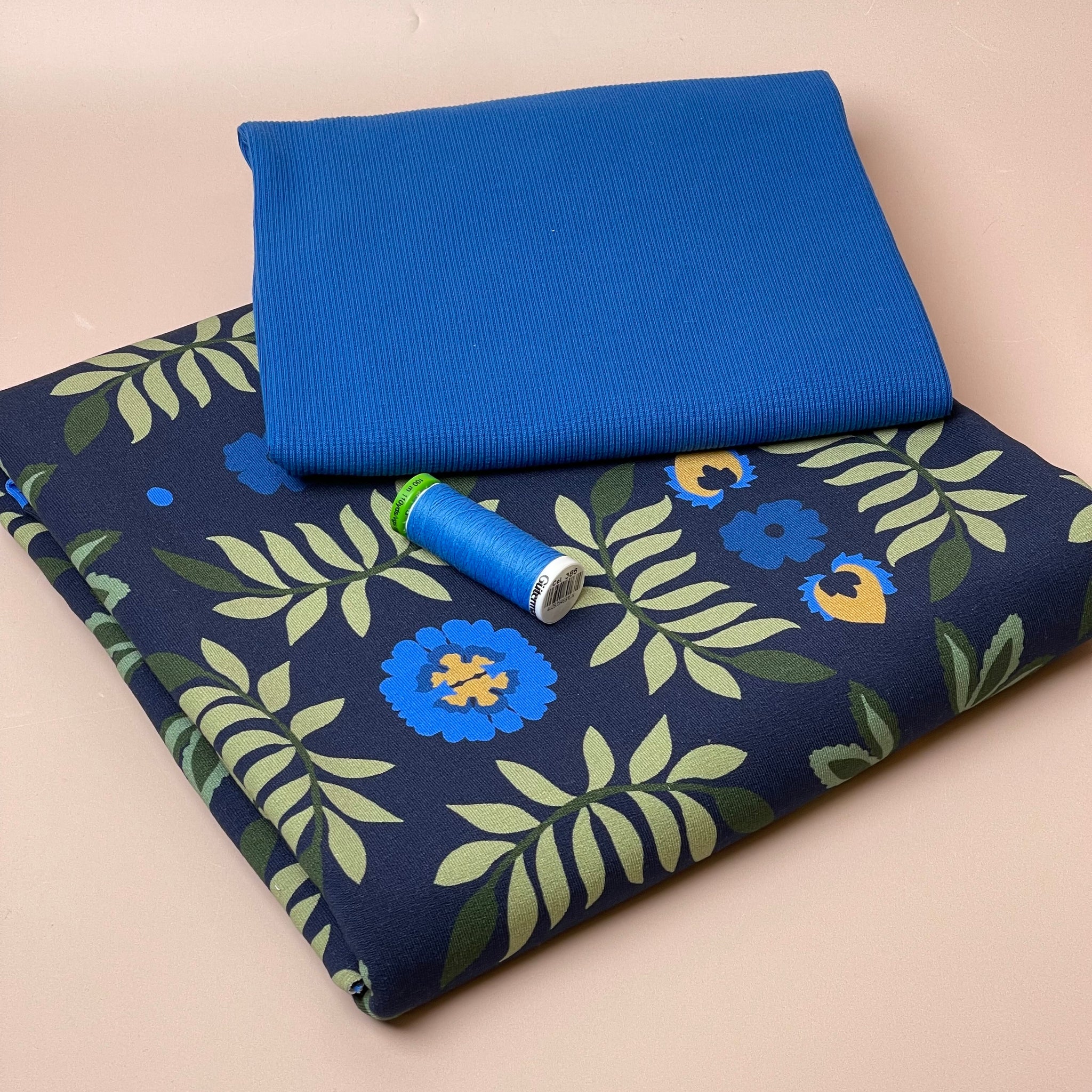The colours match perfectly to the knit collections from Mind the MAKER. We stock perfectly matching sweatshirting in Intense Blue shade.