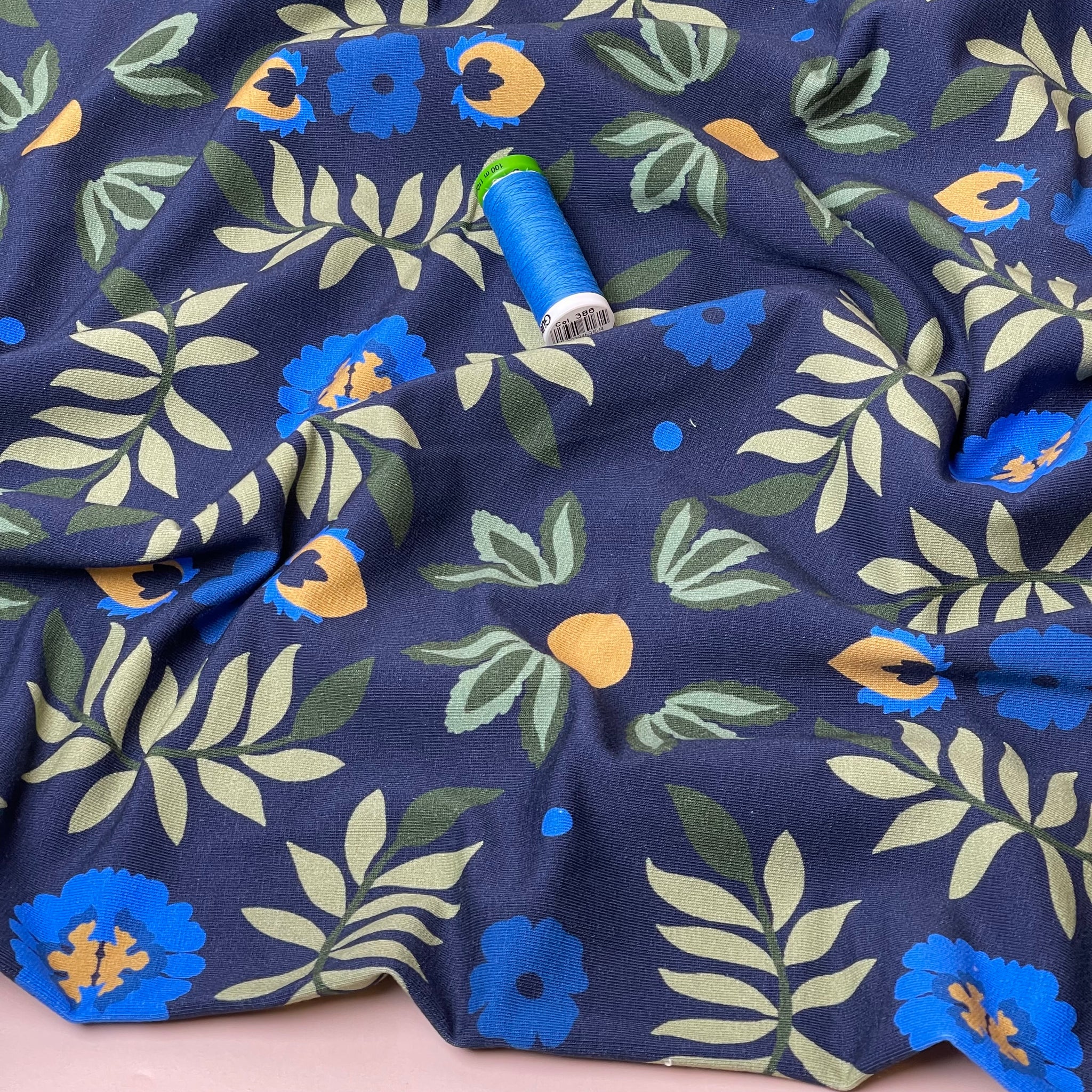 Colour Bundles - Ornamental Garden Navy Cotton French Terry & Ribbing