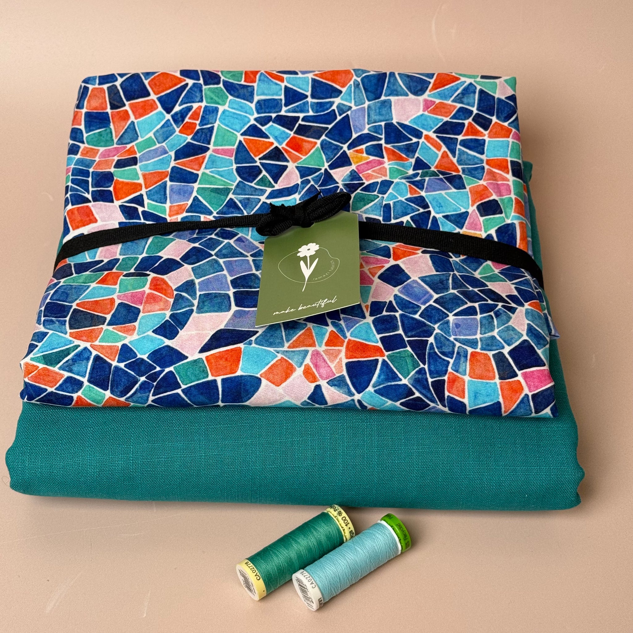 Make An Outfit Colour Bundle and Sewing Kit - Regalia Blouse in Mosaics Summer and Spring Trousers in Teal Linen
