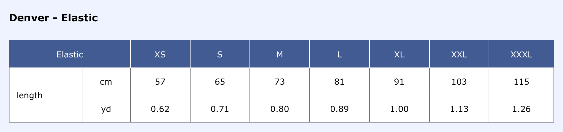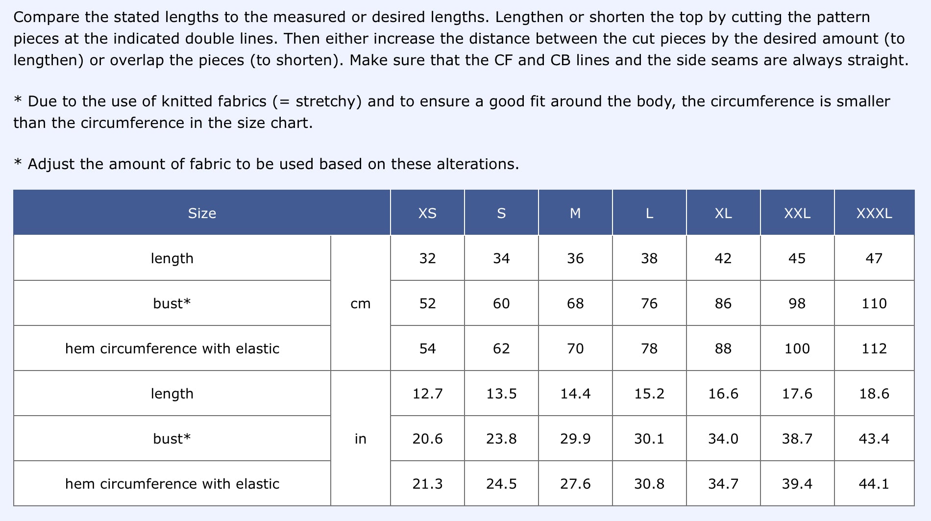 Size chart: