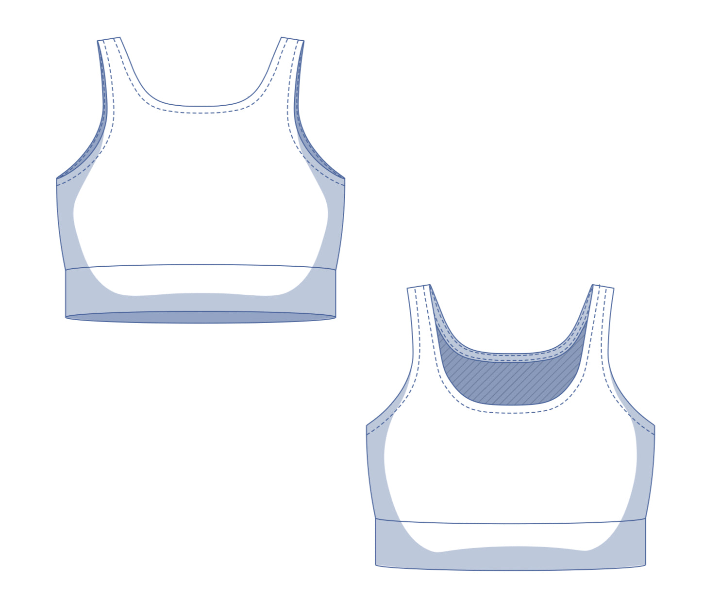 Denver is a fitted sports top with a comfortable hem, with the option to add elastic for extra support and stability. The edges are finished with stretch bias tape. Perfect for yoga, Pilates or just a relaxed day at home.
