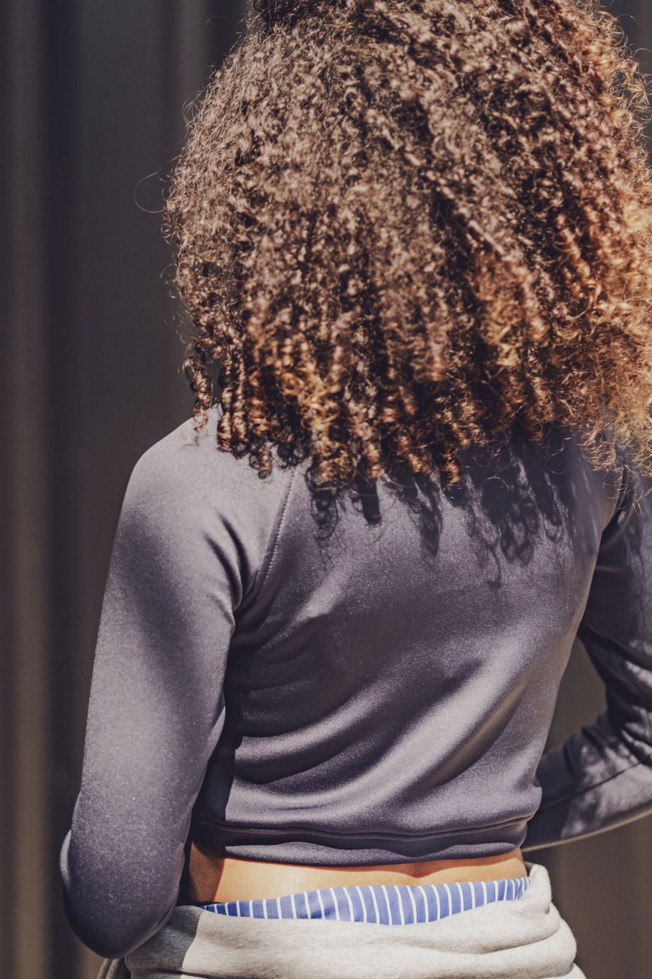 Dymar is a fitted, cropped sports top with a round neckline and raglan sleeves. The neckline is finished with a neck trim, and the hem with a firm band for a nice fit. There is a handy thumbhole in the sleeve seam, ideal for extra comfort and freedom of movement during exercise. The length is easy to customise, depending on how you want to wear it. Perfect for active days or as a sporty layer under a jacket. We bet you'll make more than one!
