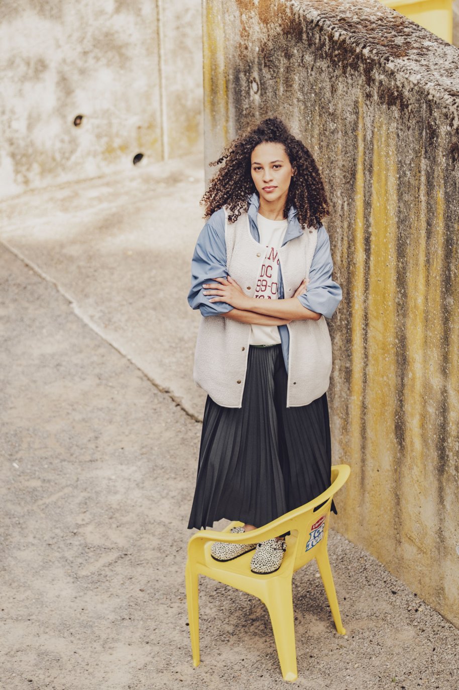 The edges are neatly finished with bias tape and you can decide whether to add snap fasteners or leave it openwithout a closure. Perfect for layering over your Yuki leggings and Denver top, or for adding a touch of flair to your everyday outfit.