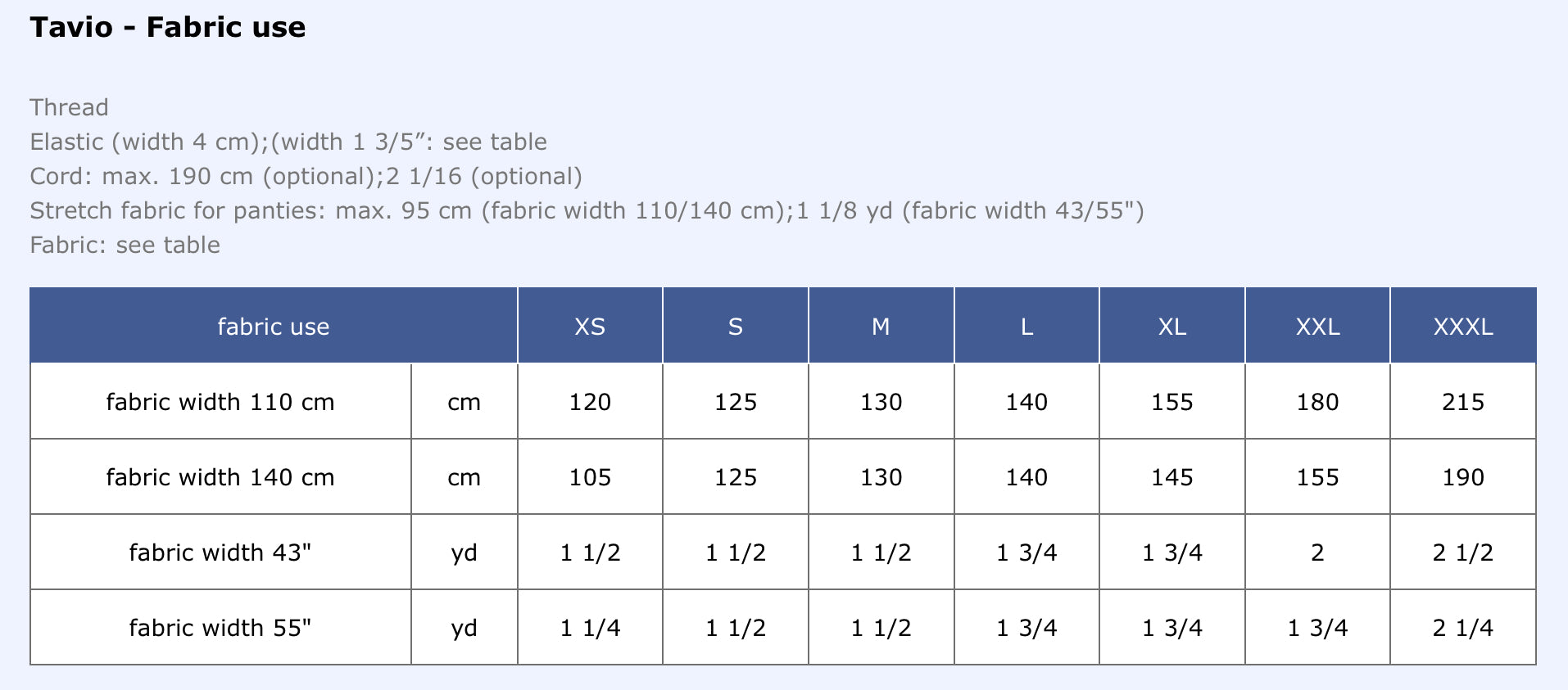 At first glance, Tavio looks like a simple pair of sports shorts, but look again. Inside, you'll findbuilt-in panties for extra comfort. The diagonal lines are flattering - yes, even around your bottom - and the waistband includes an insert with elastic, plus the option to thread in a cord or ribbon for a decorative finish. The edges are neatly finished with bias tape, either self-cut from your fabric or purchased separately. Ideal for the runners, yogis or cyclists among us.