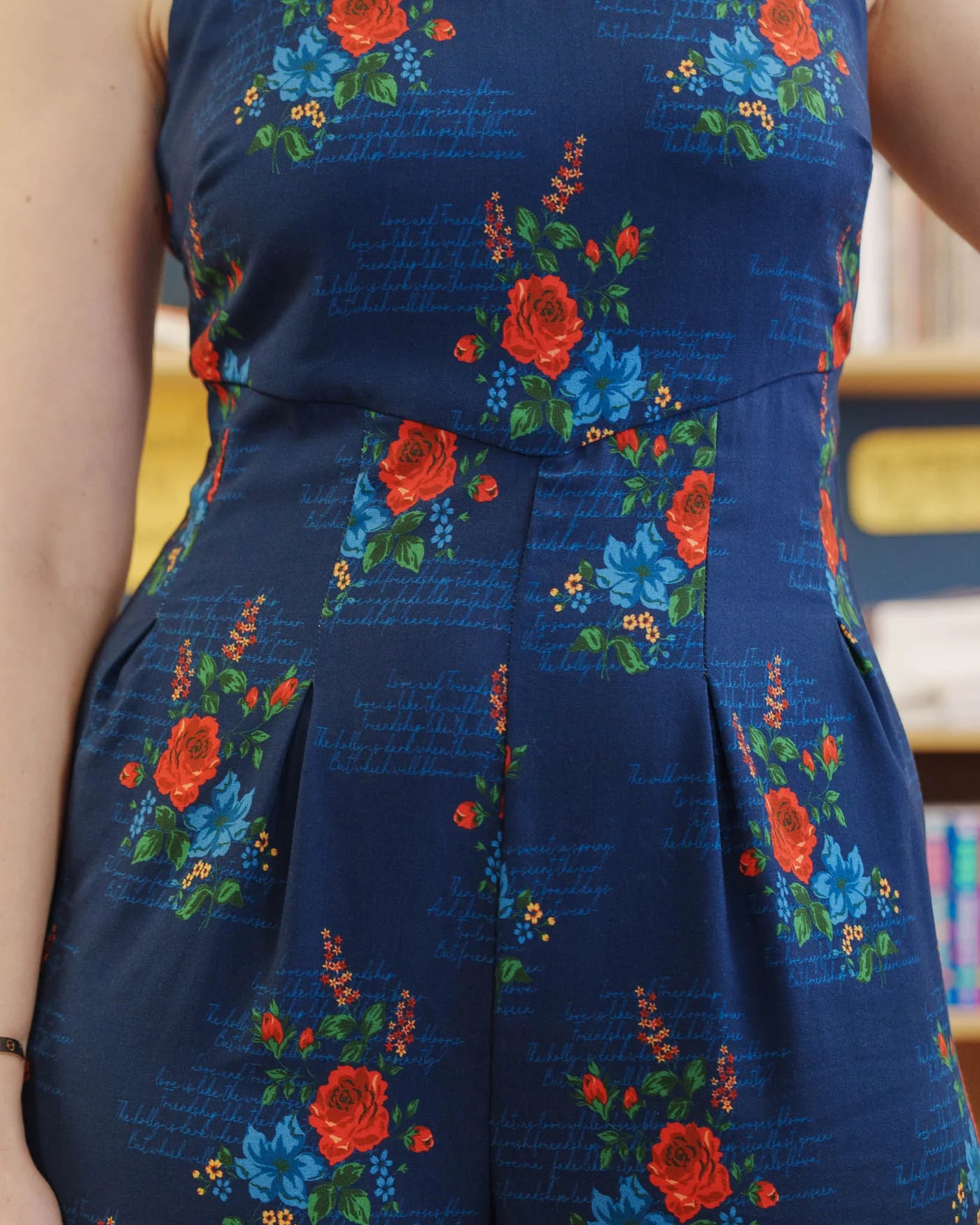 Available as trousers or as a skort, Elinor is a jumpsuit that plays with volumes. Its fitted bodice stands out with a pointed cut-out the front and a straight neckline at the back. The waist is highlighted by inverted pleats at the front which shape the fullness of the of the leg, while darts five shape to the back, finished with the invisible zip.